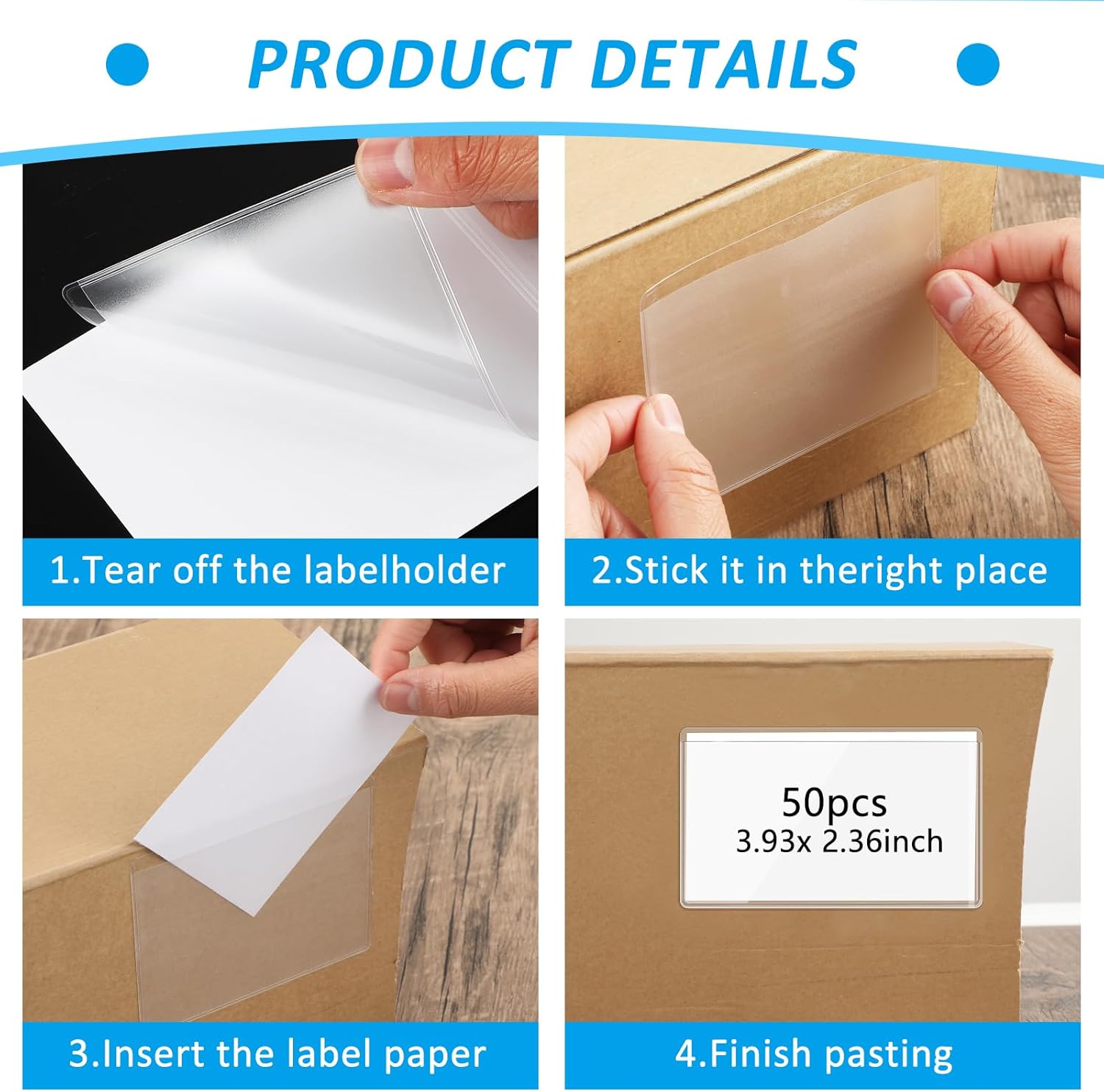 - 【Package Content】You will get 50 plastic adhesive label pockets, which can be conveniently attached to flat surfaces such as whiteboards or display screens. These adhesive pockets for labels feature an opening at the top that allows you to place your cards neatly inside, protecting your cards and allowing them to fit snugly where you choose.