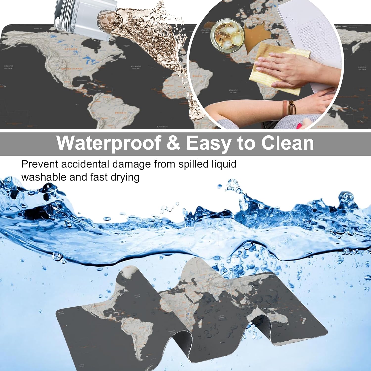 Desk Mat, Vintage World Map Extended Large Gaming Mouse Pad XXL, Non-Slip Rubber Base Stitched Edges Long Computer Keyboard Desk Pad Mouse Mat for Home Office Gaming 35.4"X15.7"