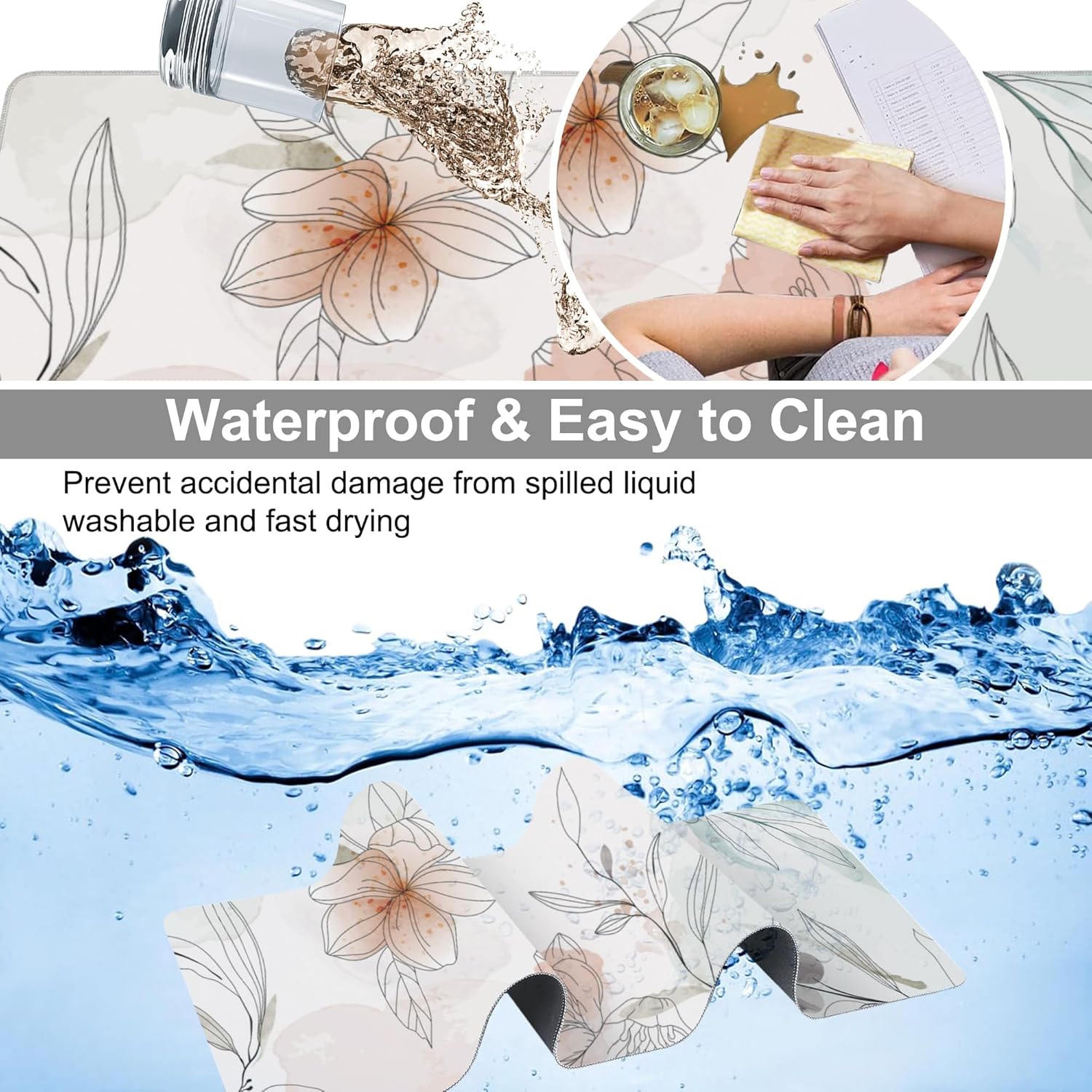 Desk Mat, Abstract Boho Flowers Extended Large Gaming Mouse Pad for Desk XXL, Non-Slip Rubber Base Stitched Edges Long Computer Keyboard Desk Pad Mouse Mat for Home Office Gaming 35.4"X15.7"