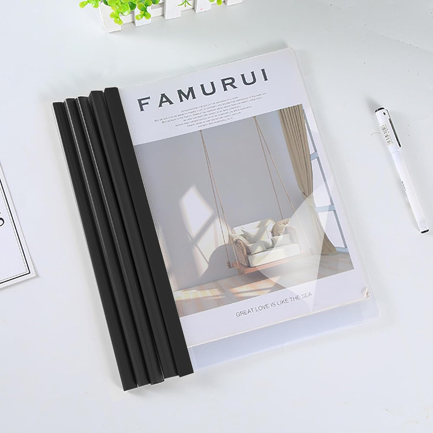 - SUITABLE SIZE: The presentation folder binder is approximately 30 x 22 cm/11.8 x 8.66 inches, suitable for letter and A4 sizes. The sliding bar width is 5mm, it will not slip off the transparent report cover easily. No need to punch holes, easy to load.