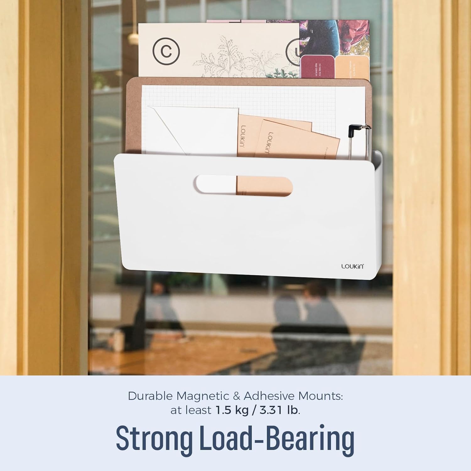 loukin Magnetic File Holder - Vertical Wall Mount Organizer for Whiteboard, Refrigerator, Office Wall, Documents, Letters (White)