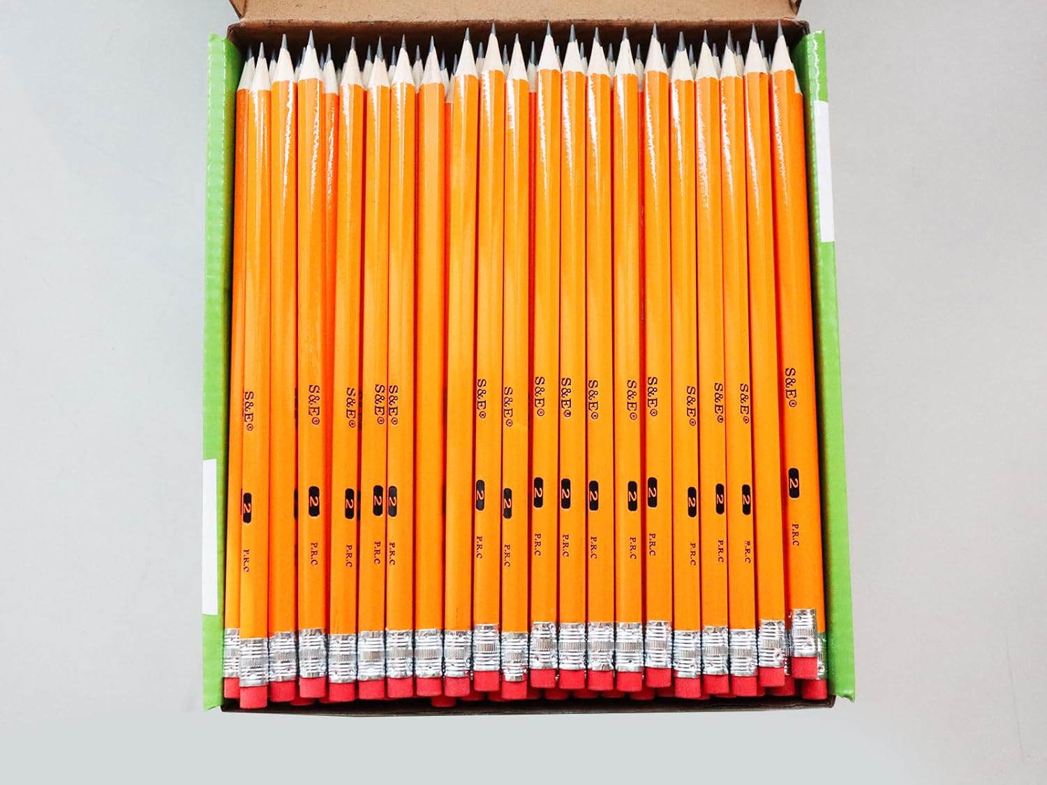 S & E TEACHER'S EDITION Woodcased #2 Pencils, Pre-sharpened, HB Lead Bulk Box, Pencils No. 2, Yellow, with Erasers, Back to school, 200 Pcs