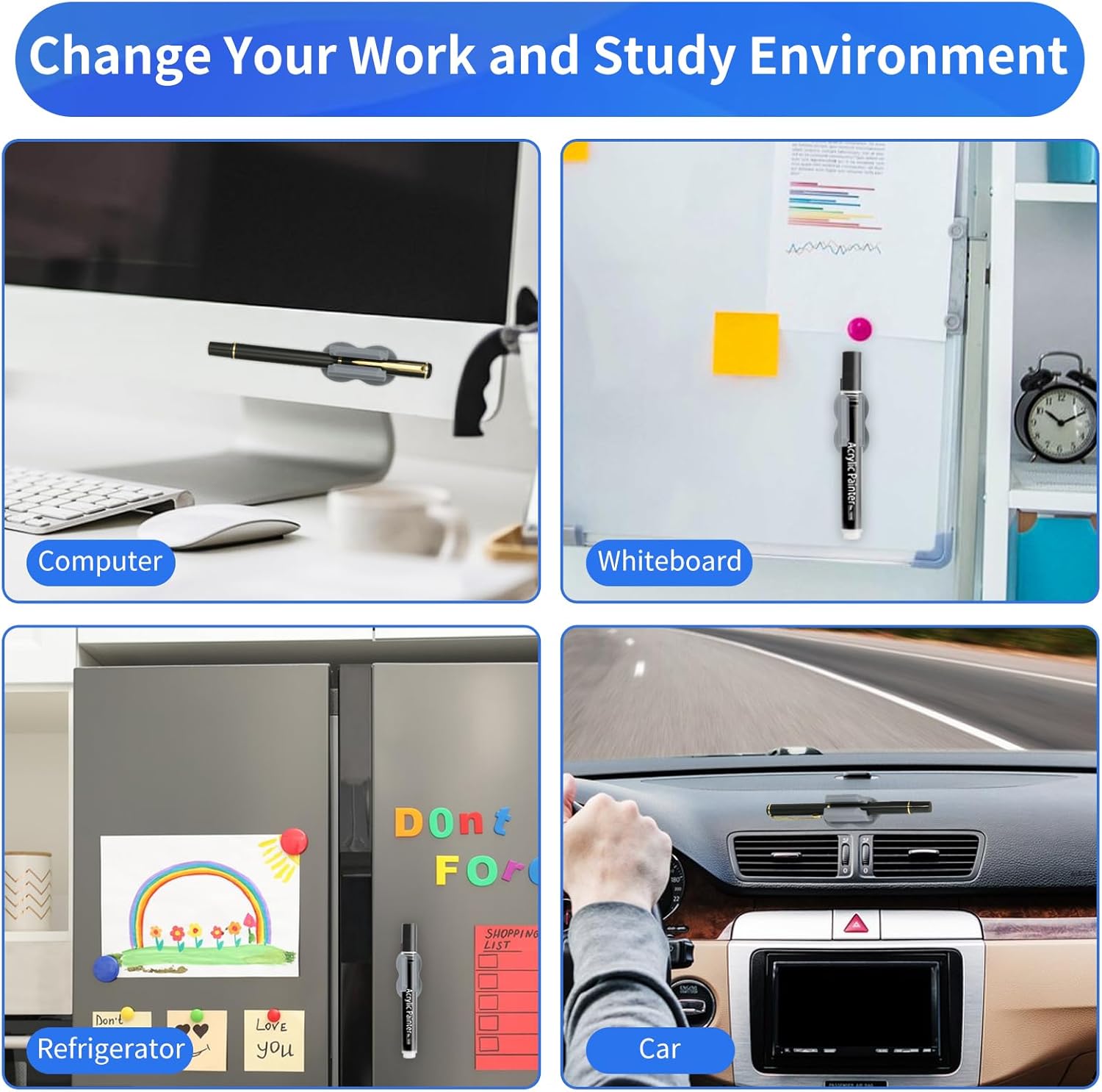 - 【Change Your Work and Study Environment】These pen pencil holders can not only be easily stuck on the desktop, but also can be fixed on the wall, clipboard, car, monitors, mirrors etc. They can hold thin and thicker pencils, pens, markers, etc. which allows you to save time by no longer wasting it searching for pens on your desk. It is an artifact that comes to your doorstep for whom need to organize a large amount of stationery.