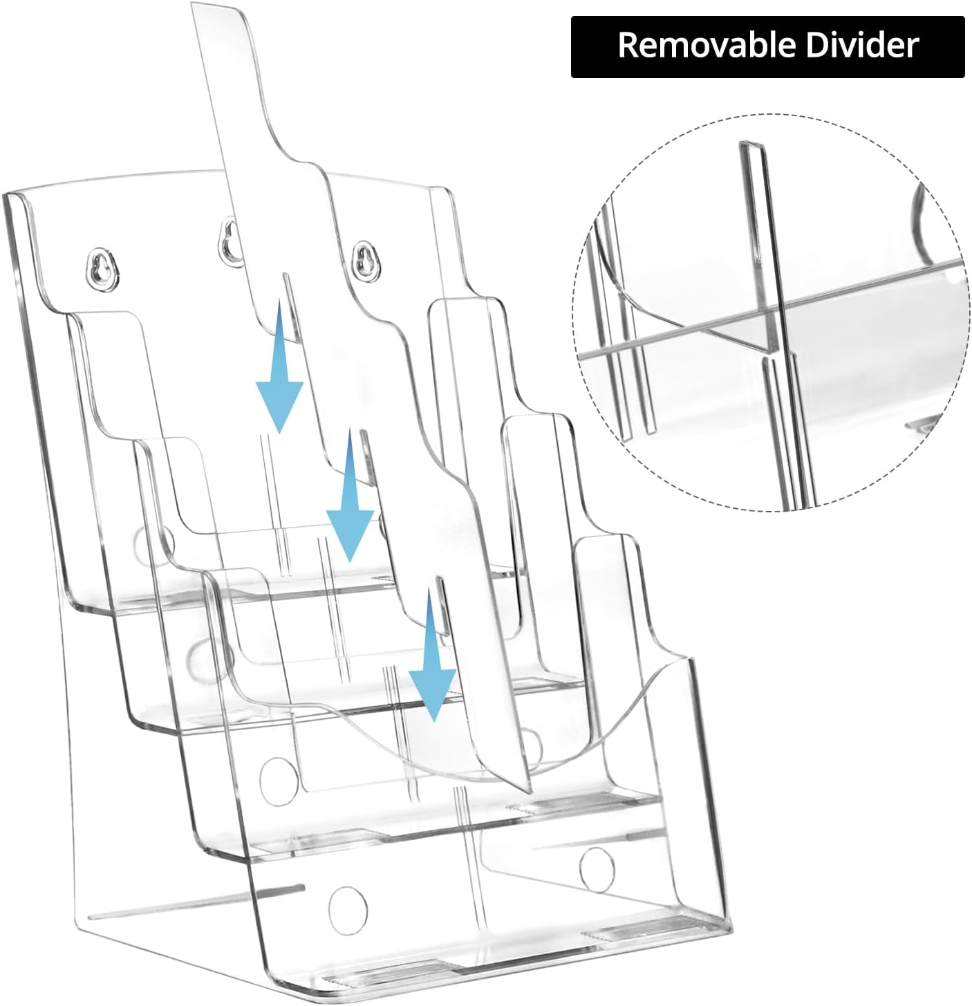 QWORK 2 Pack Acrylic Brochure Holder, 8.5 x 11 inch 4-Tier Literature Pamphlet Flyer Holder, Magazine Booklet Organizer Stand with Removable Divider