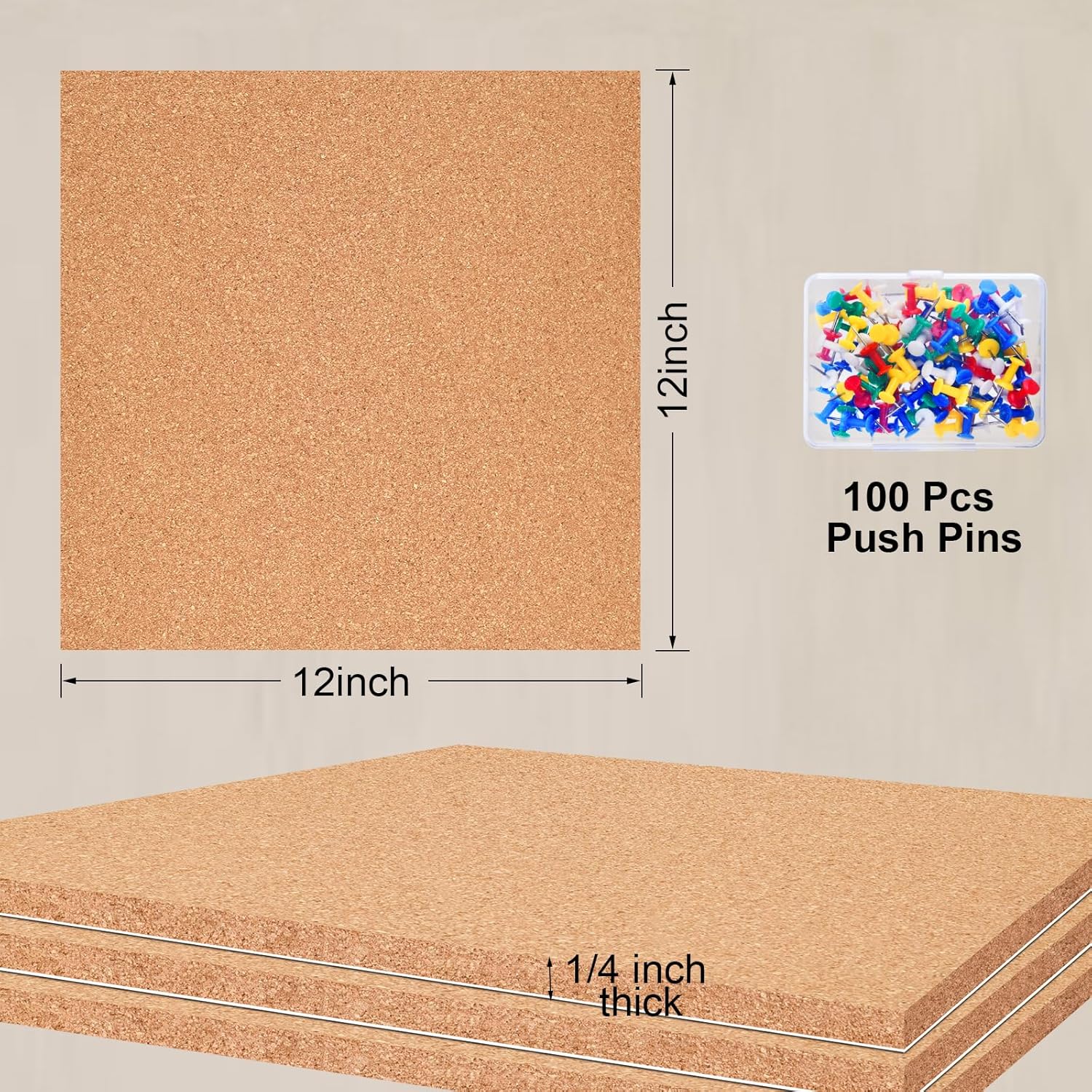 - Specifications:12"x12" cork board,each board 1/4" thick