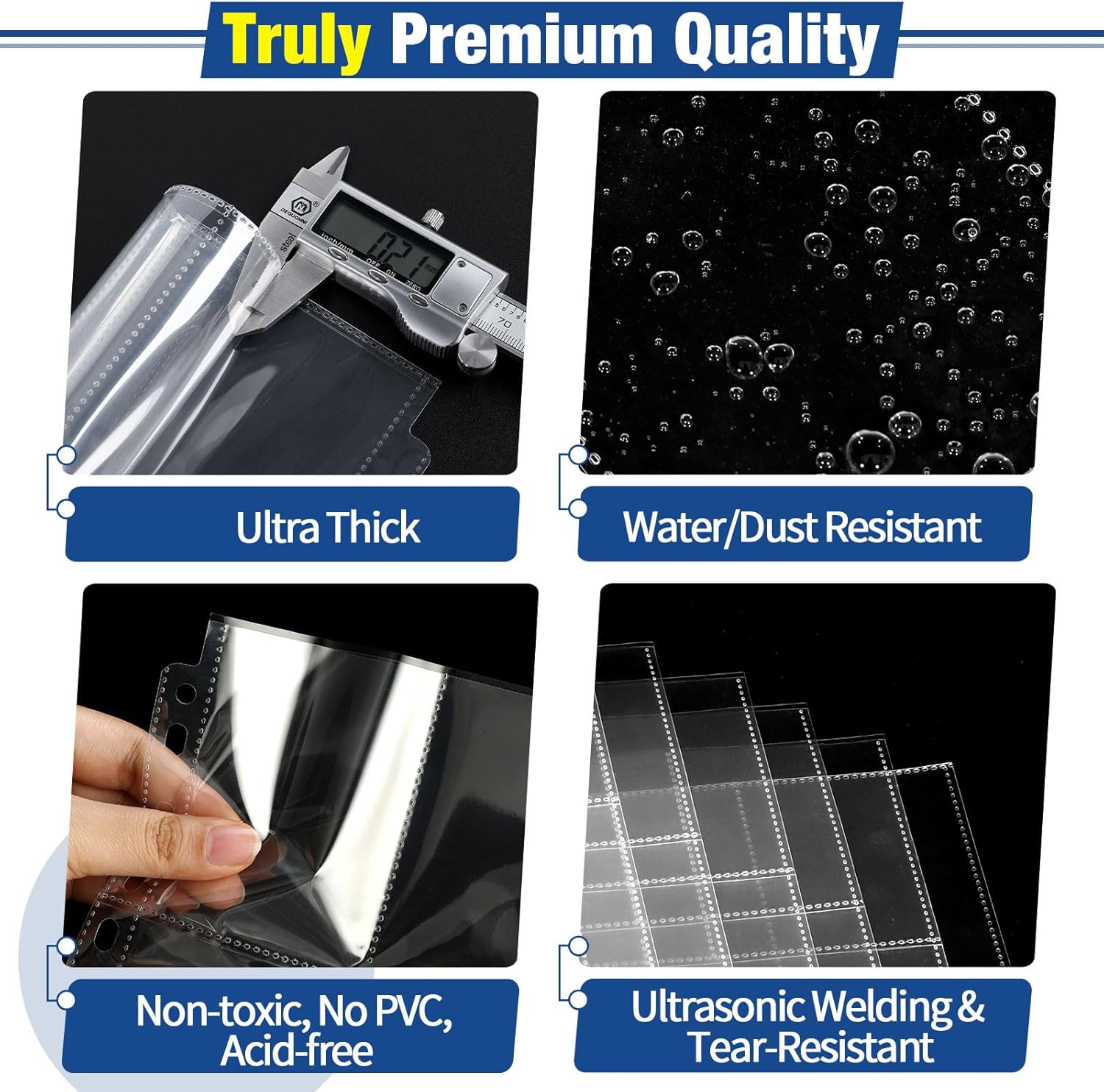 - Truly Premium Quality: Baseball card sleeves are crafted from ultra-thick PP material. Non-toxic, acid-free, PVC-free, water&dust proof, offering top-notch card protection. Enhanced with ultrasonic welding technology, ensuring enduring seams after multiple card insertions.