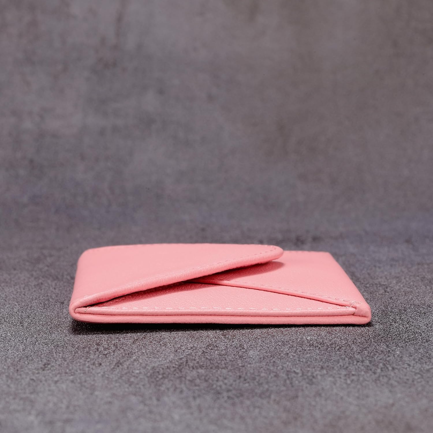 HISCOW Envelope Business Card Case with Magnet Closure - Italian Calfskin (Pink)