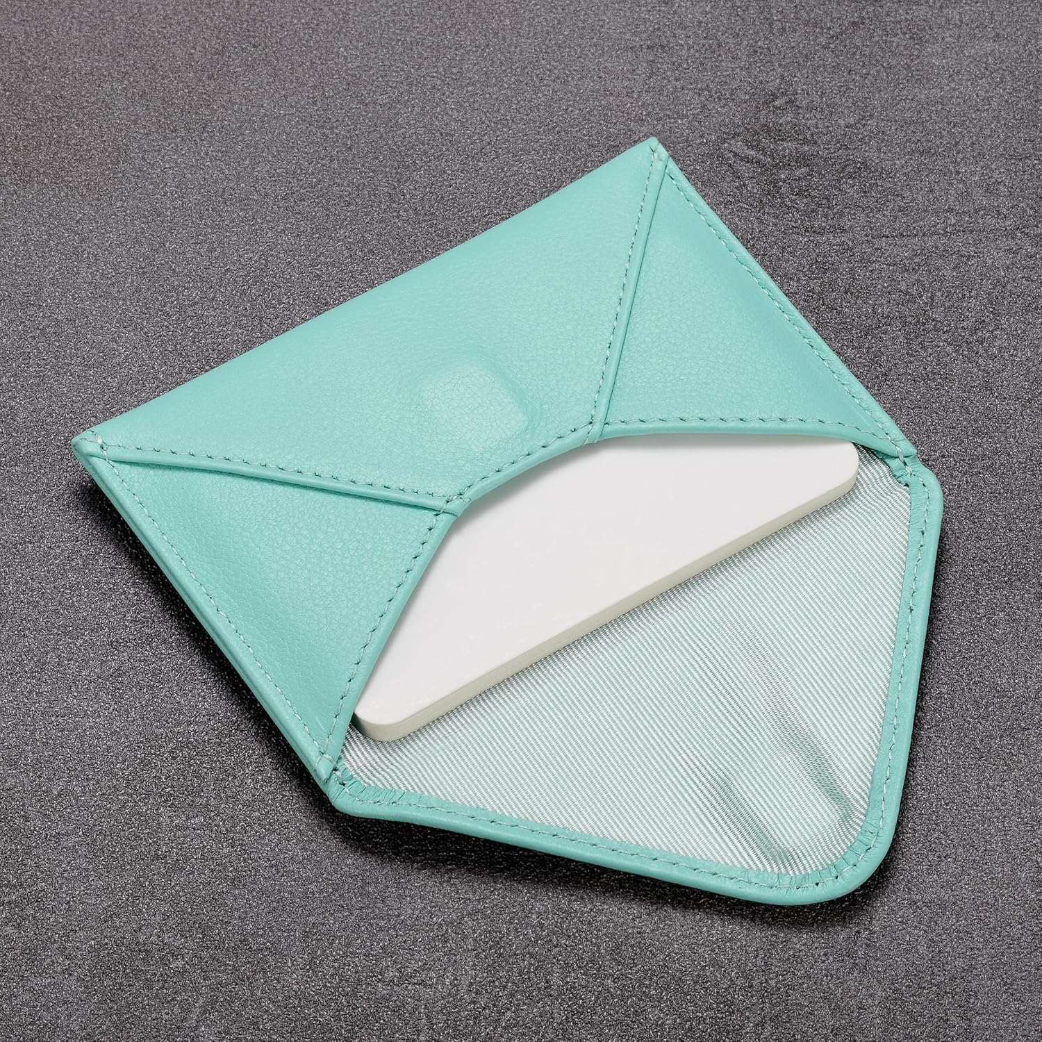 HISCOW Envelope Business Card Case with Magnet Closure - Italian Calfskin (Teal)