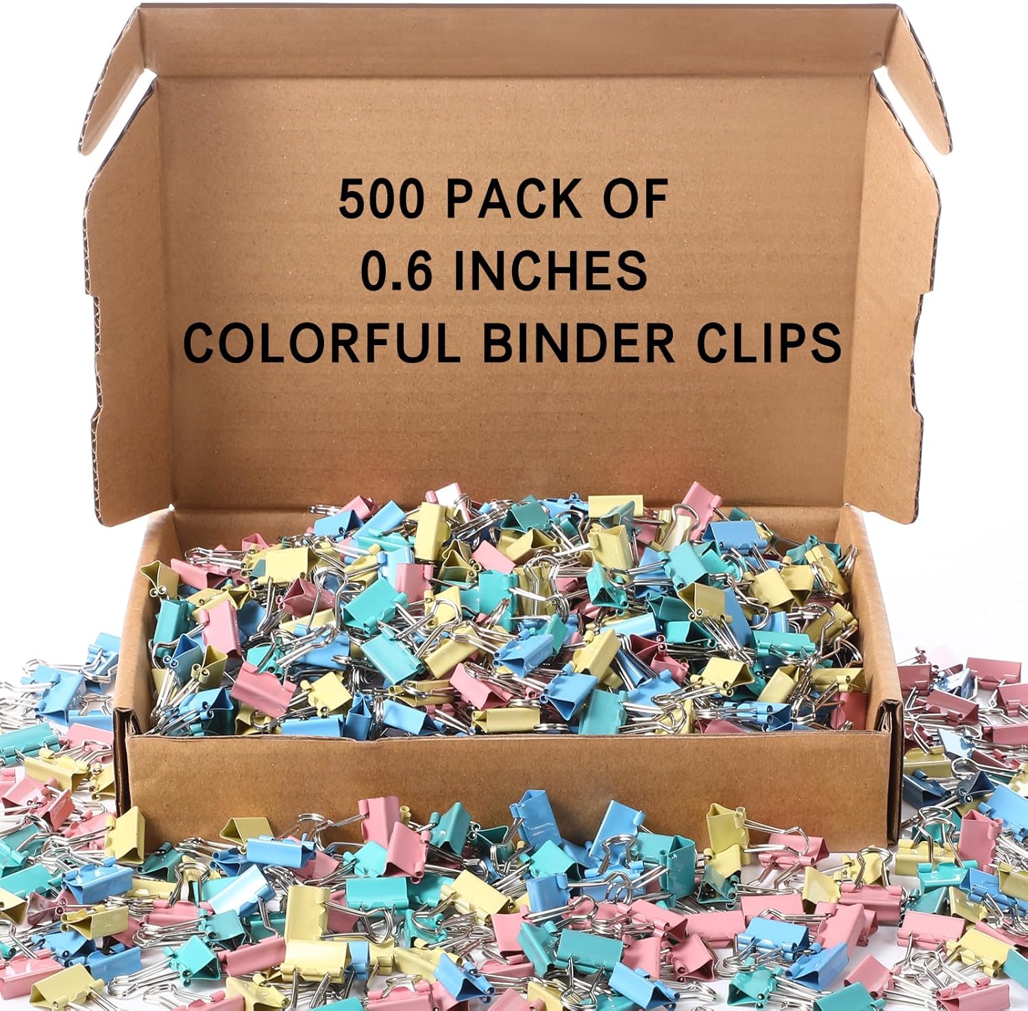 Jetec 500 Pieces 0. 6 Inch Colorful Binder Clips Bulk Small Paper Clamps Metal Paper Clips for Teachers Students Classroom Business Office and School Office Supplies