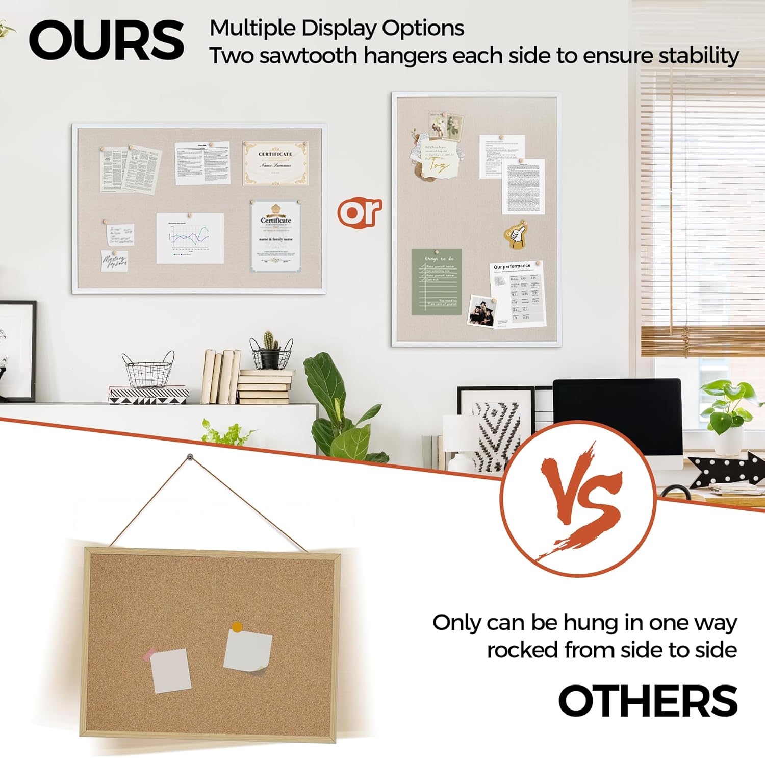 - Unique Design: Easily customize the board orientation to fit your space. Natural cork bulletin board add a classic look to your office or home. Both strong and stylish, it will be a great addition to your space.
