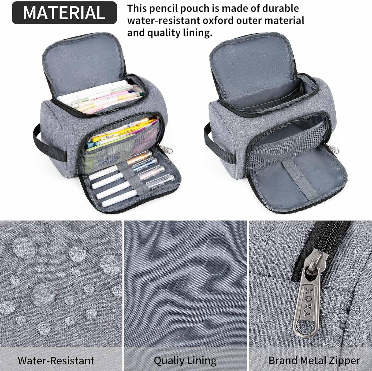 XQXA Large Capacity Pencil Case Organizer, Multifunctional Extra Big Pencil Pouch with Compartmens, Travel Simple Stationery Pen Bag, Fabric Pencil Bag for Men Women Girl Boy (Grey)