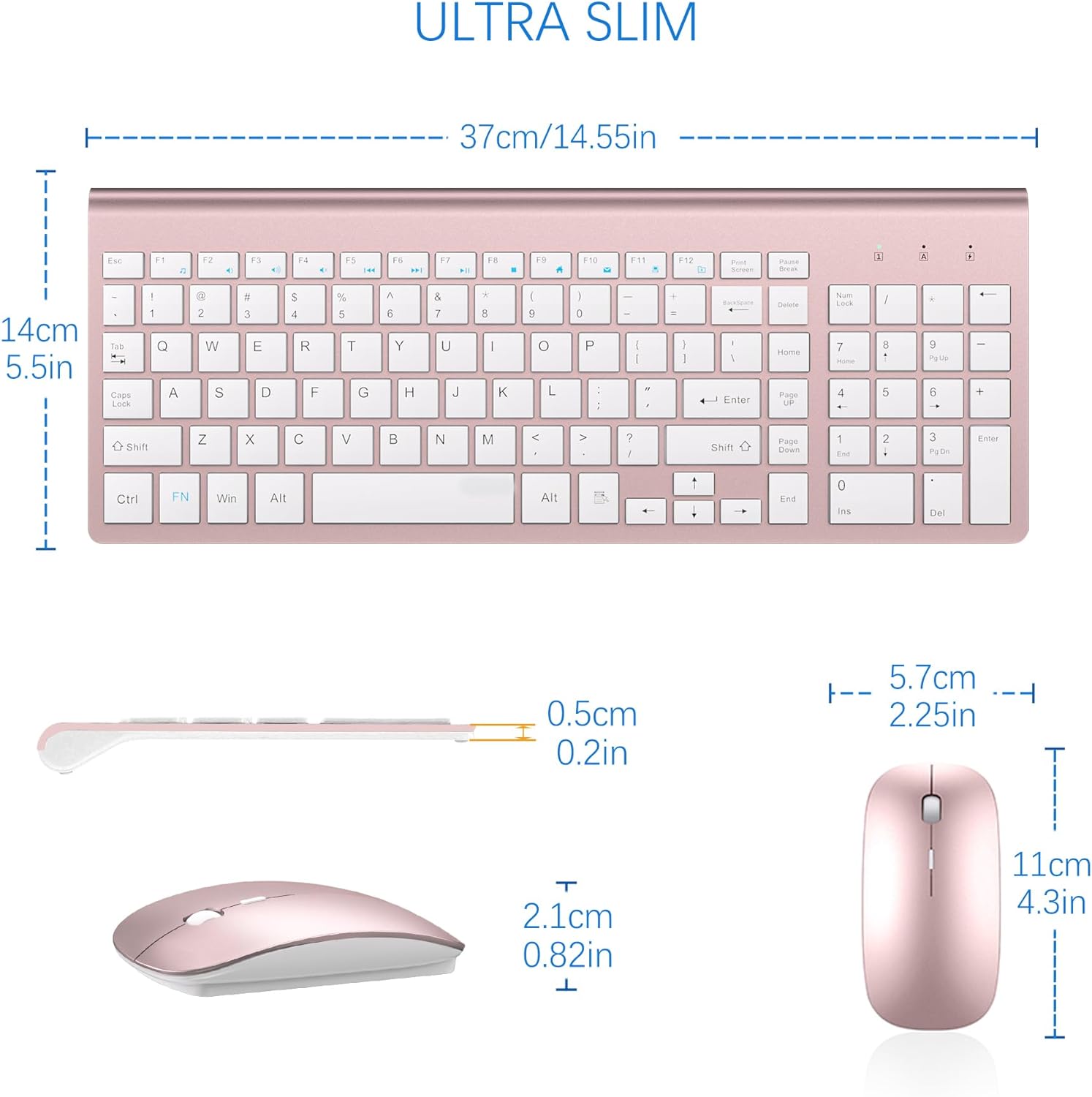 Wireless Keyboard and Mouse Ultra Slim Combo, TopMate 2.4G Silent Compact USB 2400DPI Mouse and Scissor Switch Keyboard Set with Cover, 2 AA & 2 AAA Batteries,for PC/Laptop/Windows/Mac-Rose Gold White