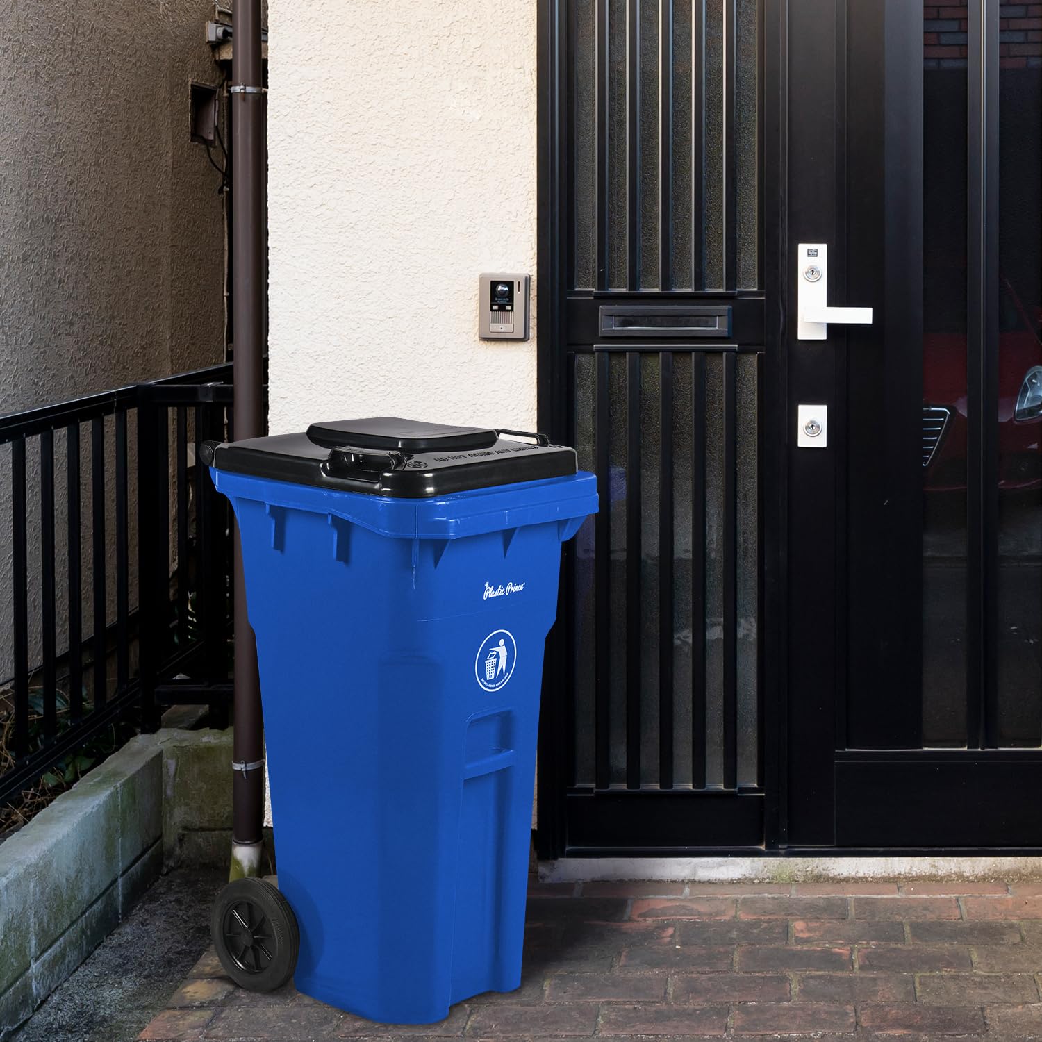 32 Gallon Recycling Rollout Trash Can with Lid, Commercial Heavy-Duty Wheeled Outdoor Garbage Can, Blue