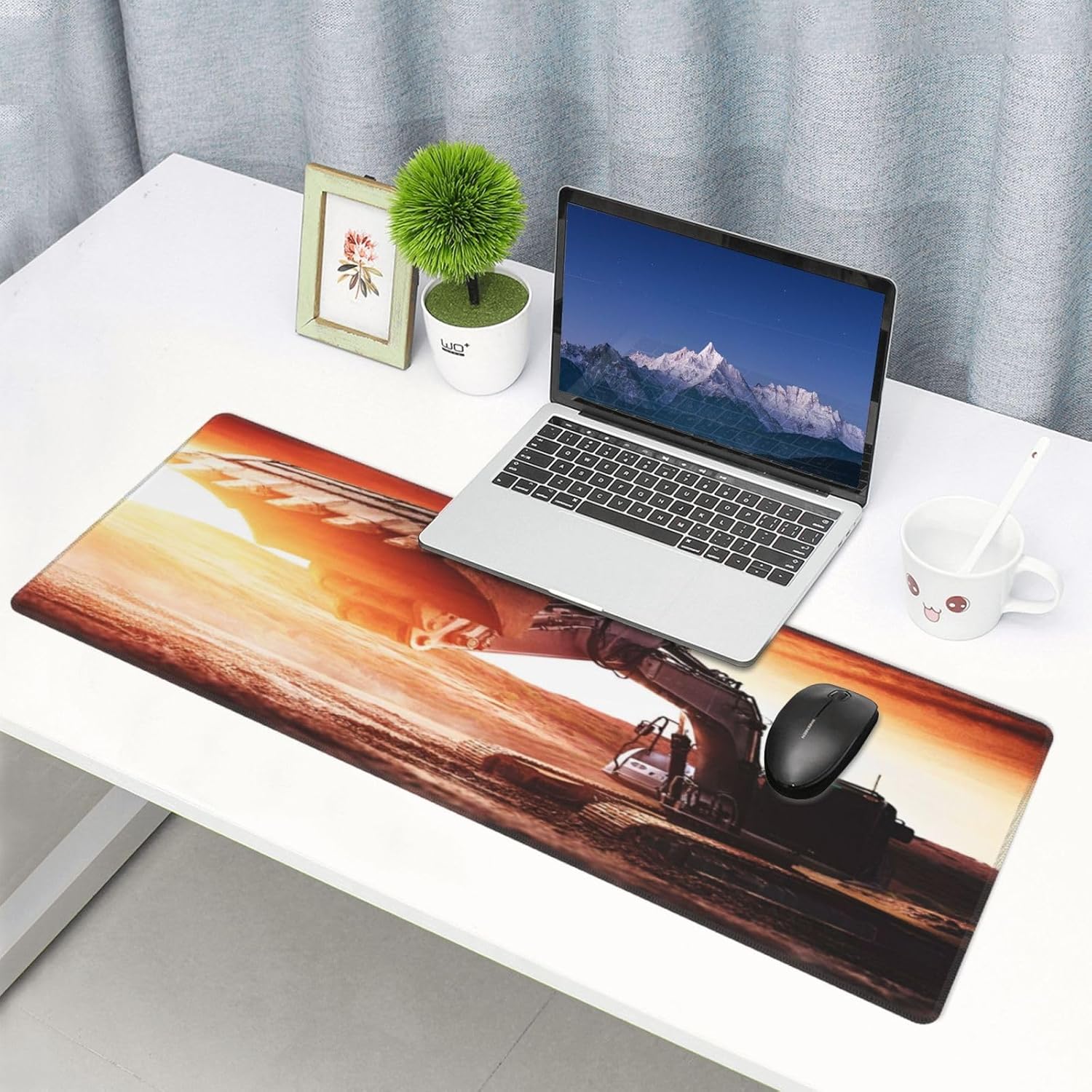 Digger Mouse Pad, Construction Vehicles Large Big Gaming Mouse Pad Desk Pad, Mousepad with Non-Slip Rubber Base, Extended XXL Mouse Mat for Computer Laptop Office Accessories