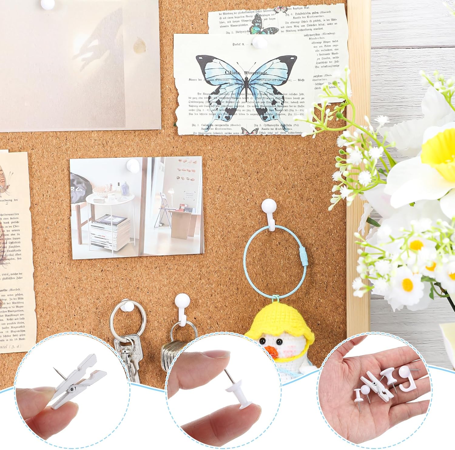 - 【Easy to Use】Our push pins can be easily attached to the board or removed without hurting your hands or leaving visible holes in the surface of the object. The push pins clips do a great job of holding paper together, and the push pins hooks also make it easy to hang products up to 20 lbs for your convenience.