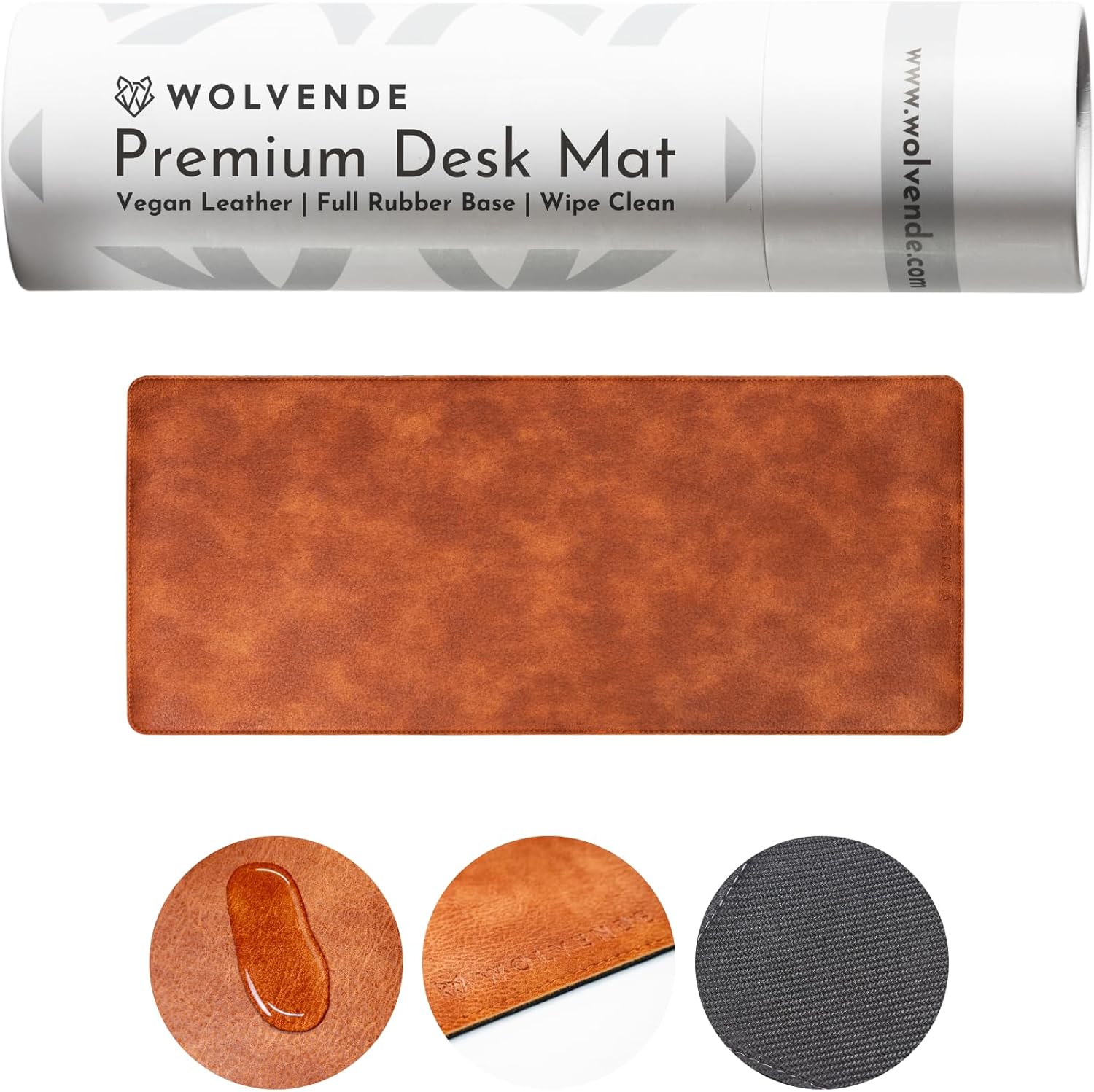 - PREMIUM HARD-WEARING VEGAN LEATHER - Constructed from hard-wearing, vegan-friendly leather, the Wolvende Premium Desk Mats are built to last those long work days and late gaming nights. Find the right size and coloured mat to complete your setup.