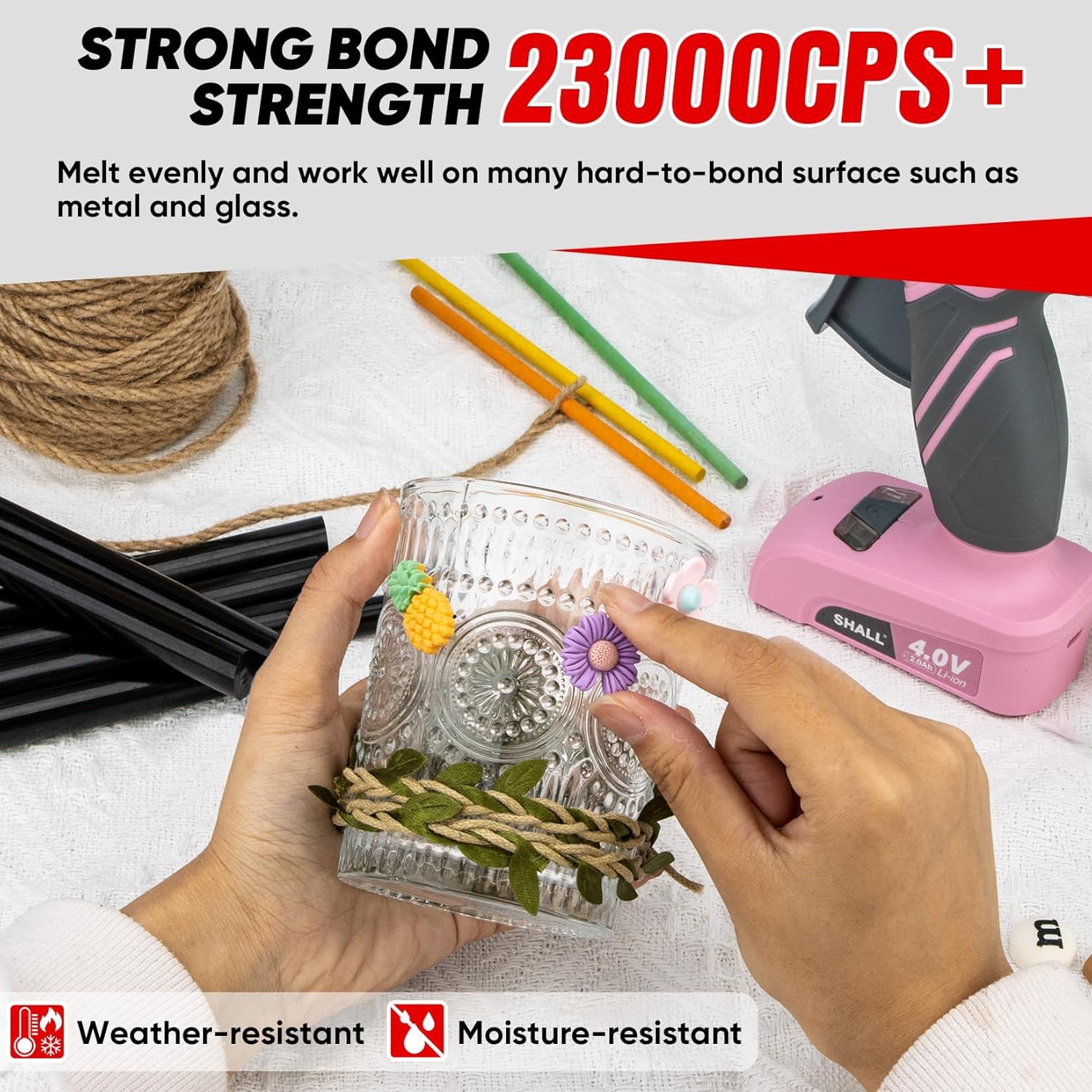 - High Viscosity & Good Flexibility : The craft glue gun sticks are made of flexible EVA resin that provides strong bond strength (23000 CPS +), fast curing speed and toughness, which makes it works well on many hard-to-bond surface such as metal, glasses and plastic