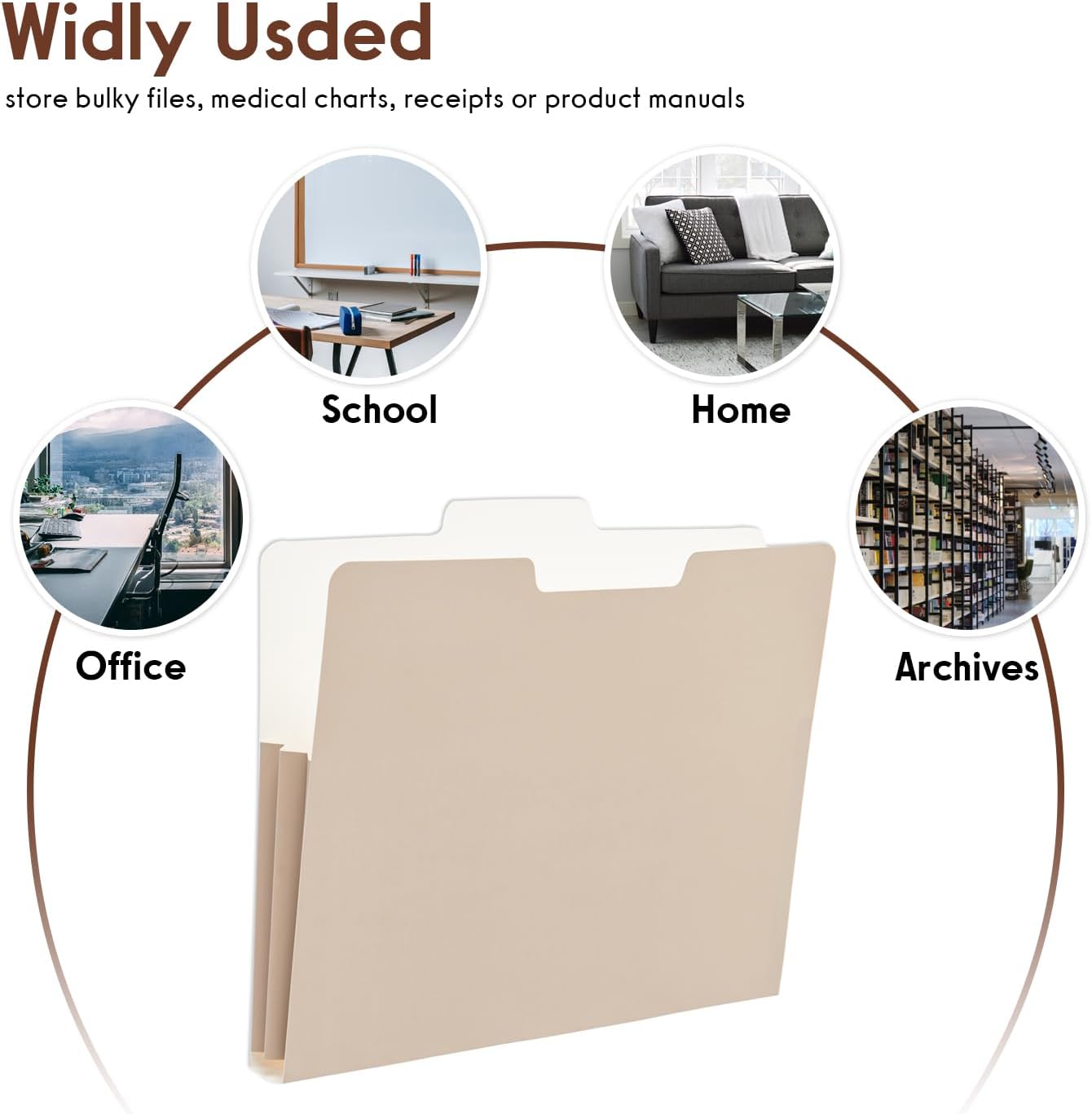 - Neatly File - 1/3 cut Build-in tabs are design for clear identification, can take well visible for quick positioning and easy file sorting. The filing folders can store bulky files, medical charts, receipts or product manuals