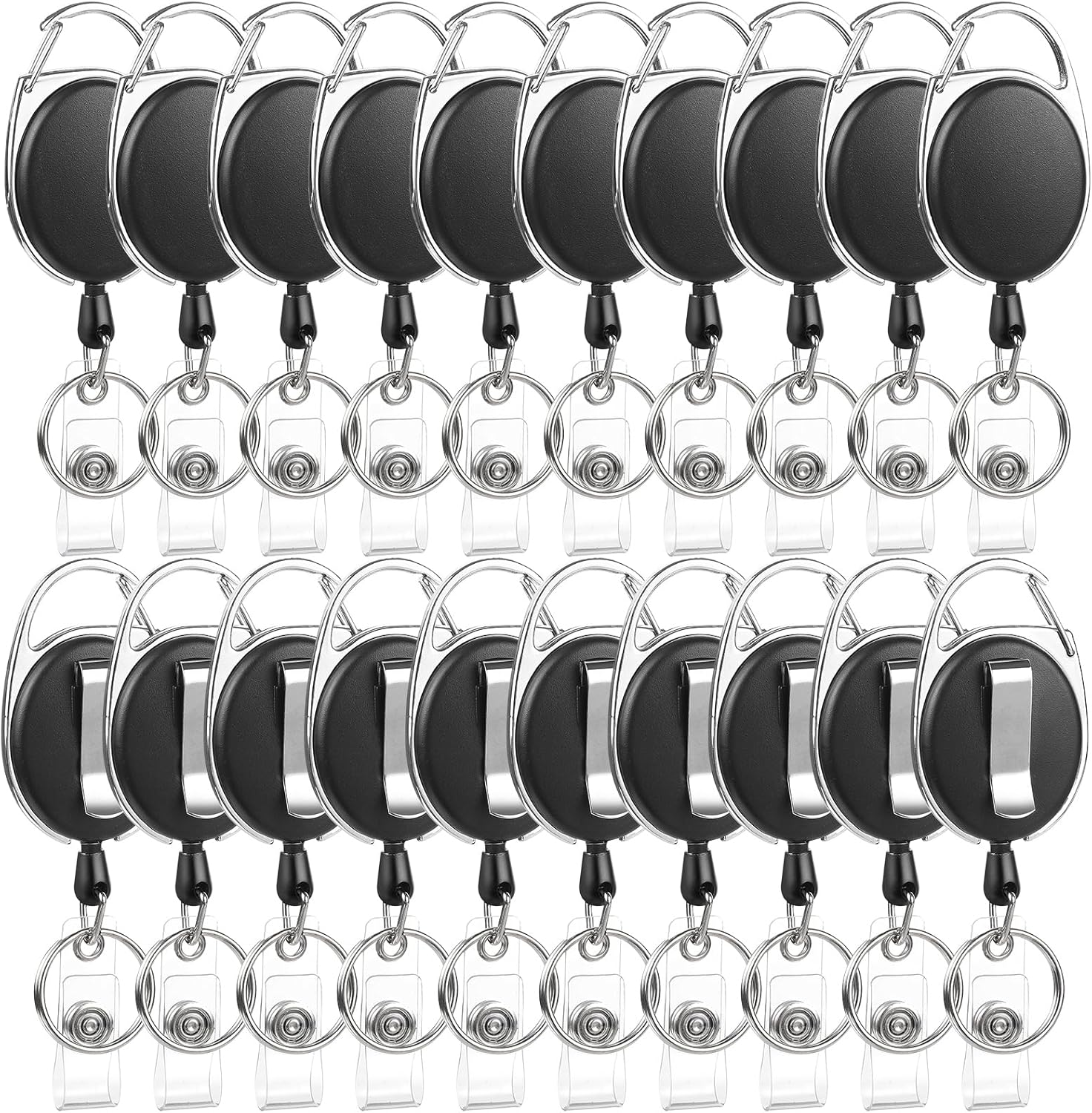 20 Pack Badge Reels Retractable ID Badge Holder with Carabiner Heavy Duty Badge Reel Clip and Key Chain for Work Office