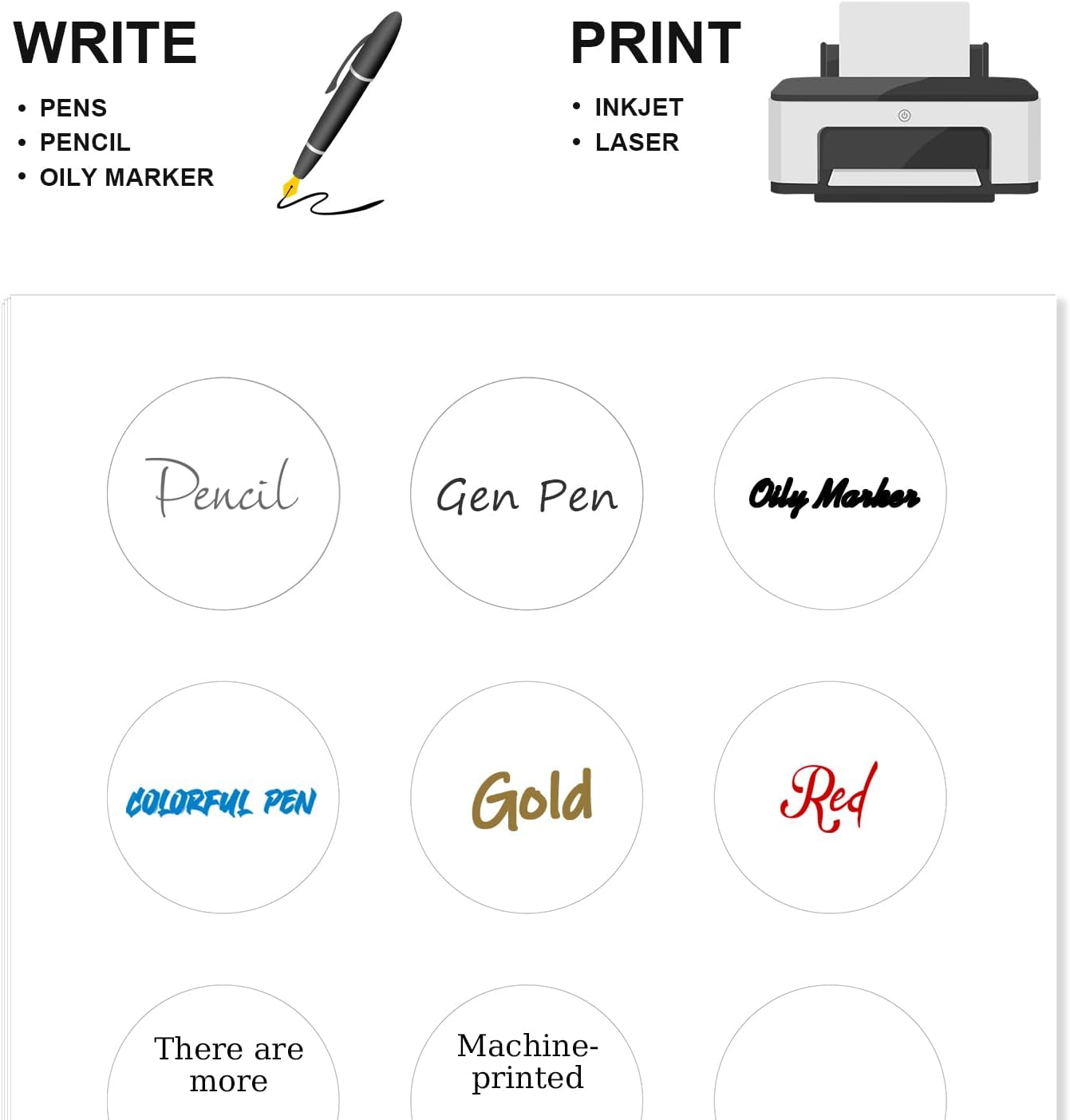 Methdic 2" Diameter High Visibility Printable Round Labels,Matte White,360 Customizable Blank Stickers