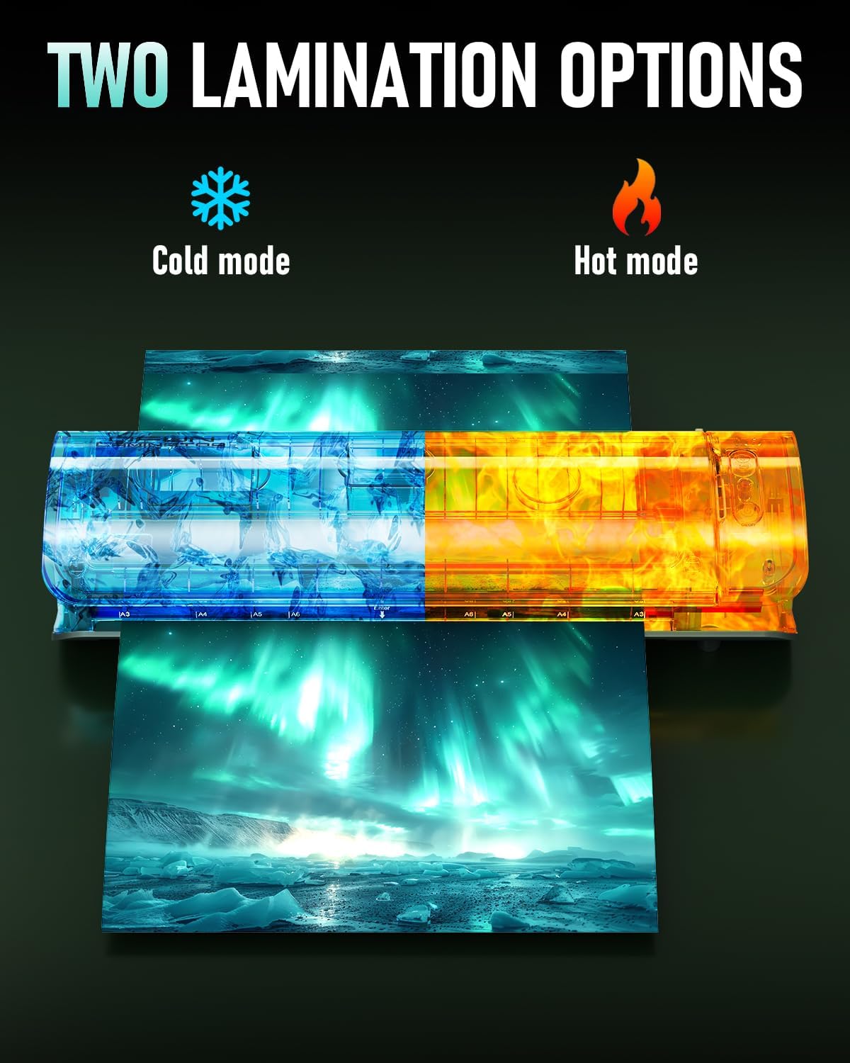 - Newly Upgraded 2 Hot Modes + 1 Cold Mode: The laminator machine 11x17 Hot Mode includes both 3mil and 5mil settings - 3mil for plain documents, photos, cards, and other film materials (pouch thickness less than 80 microns), and 5mil for thin/thick paper (pouch thickness 85-125 microns). In addition, the cold mode requires no preheating, making it ideal for document materials that are sensitive to high temperatures
