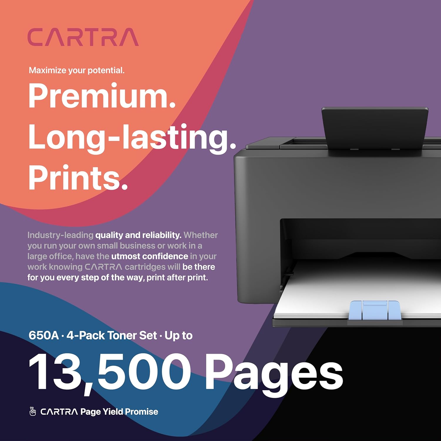 CARTRA 650A Toner Cartridges 4 Pack Compatible Replacement for HP 650A Toner Cartridges, Works with Printer Series CP5525 CP5525dn CP5525n CP5525xh M750dn M750n M750xh | Black Cyan Yellow Magenta