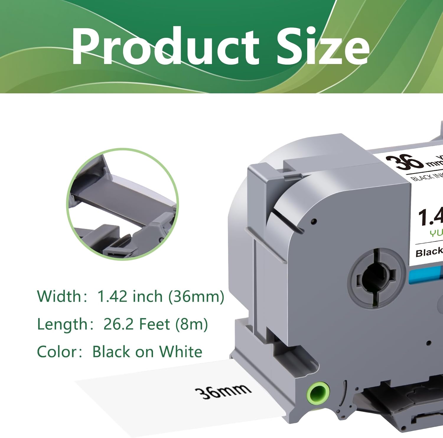 - Product Size: Width: 36mm 1.4 inch, Length: 26.2 feet (8m) for each 36mm 1.4 inch laminated white label tape