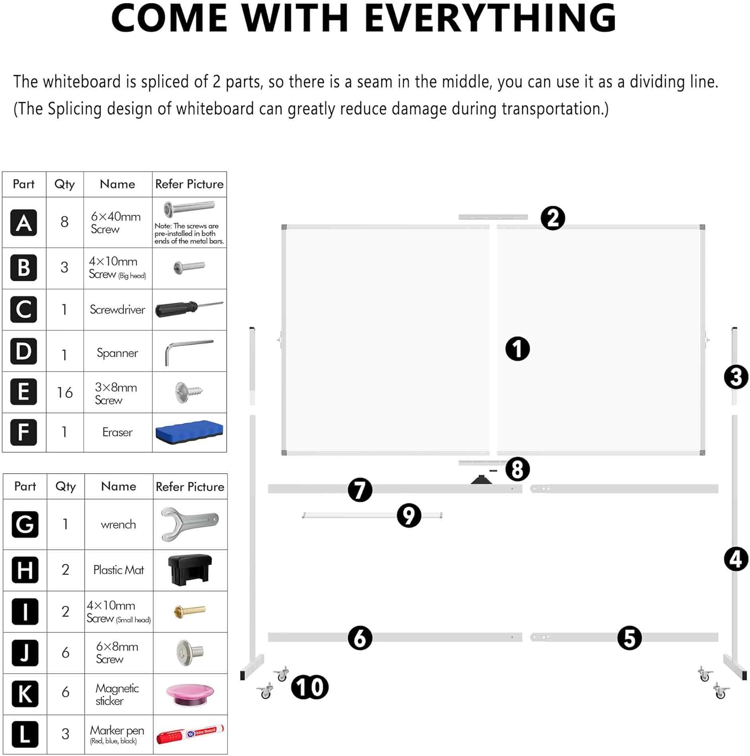 - Easy To Assemble & Accessories: Easy assembly without any prior DIY experience, with assembling instruction sheet & tools included. Complete writing and erasing accessories, holder tray and magnets included.