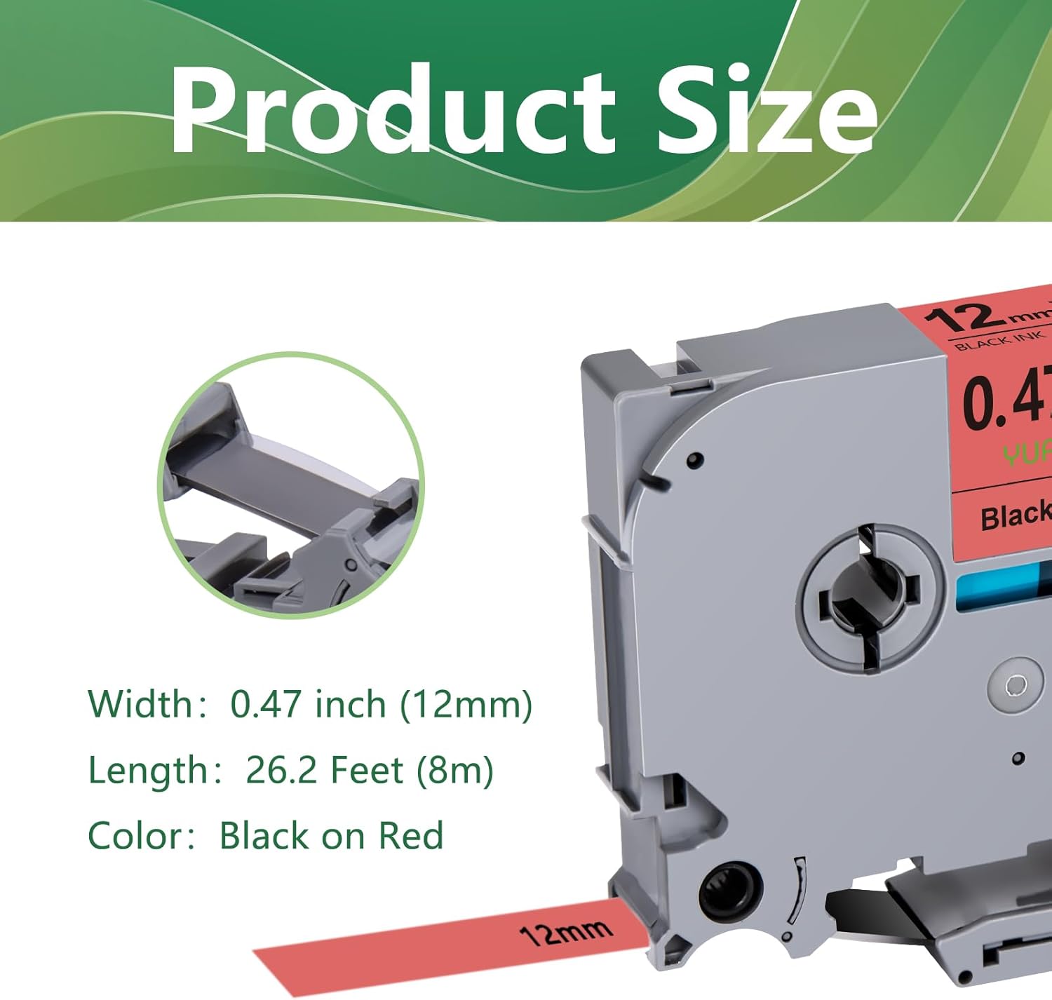 - Product Size: Width: 12mm 0.47 inch, Length: 26.2 feet (8m) for each 12mm 0.47 inch laminated red label tape
