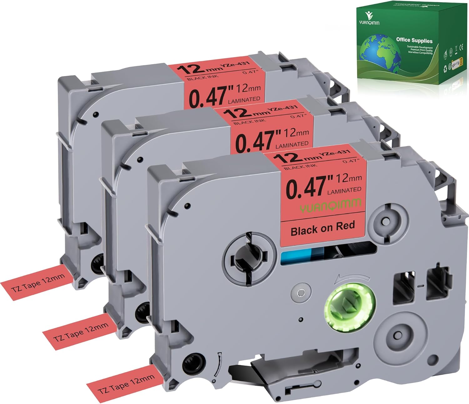 - Package included: 3-Pack Compatible with Brother PTouch TZe-431 TZ-431 TZe431 TZ431 12mm 0.47 Inch Black on Red Label Maker tape