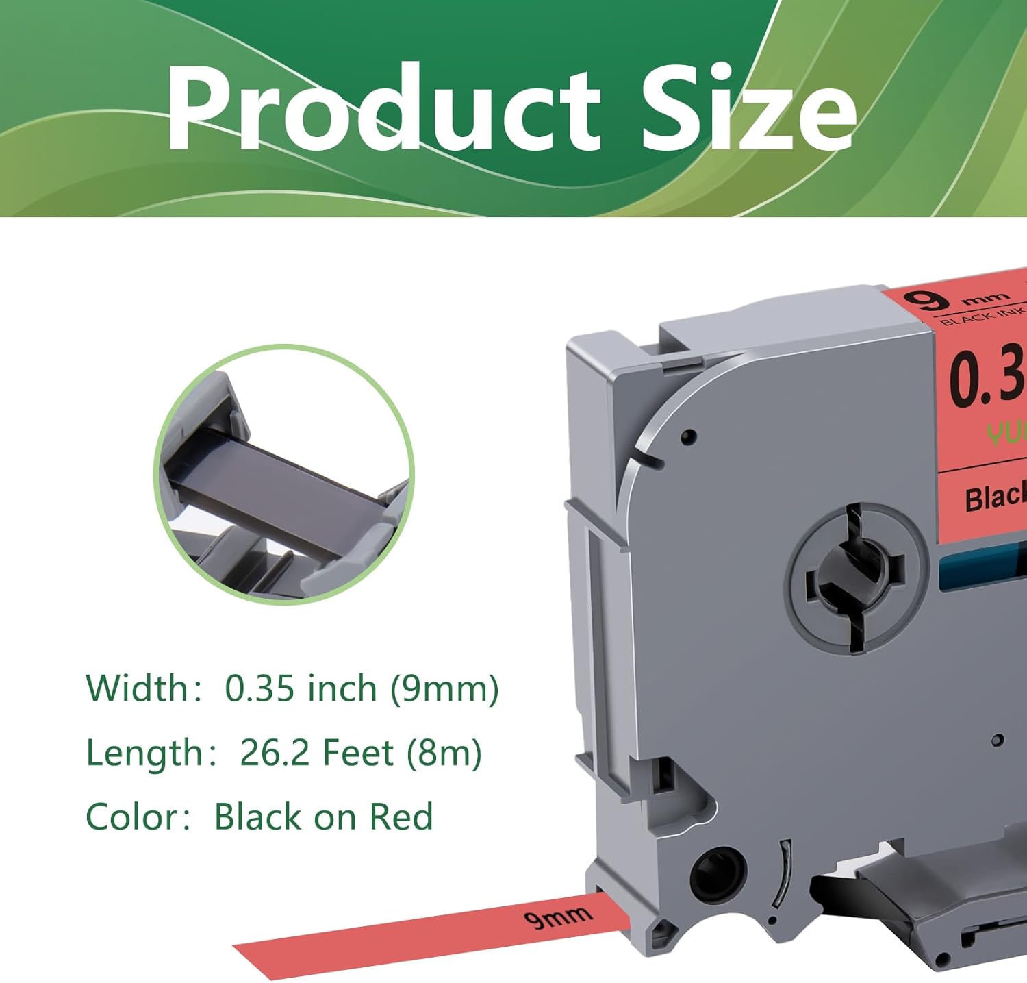 - Product Size: Width: 9mm 0.35 inch, Length: 26.2 feet (8m) for each 9mm 0.35 inch laminated red label tape