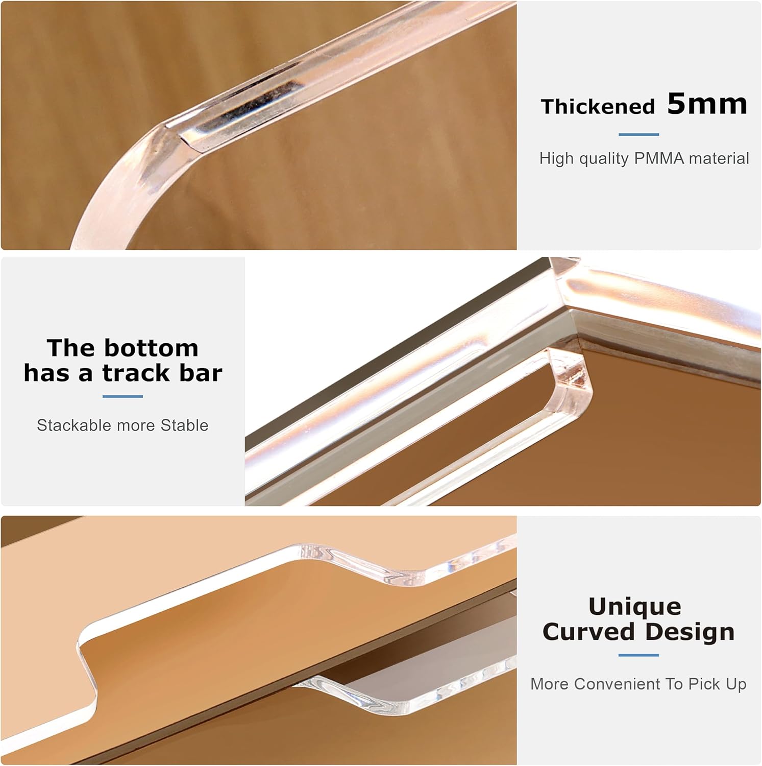 - 【Enlarged Acrylic desk organizer Tray】: 4 Pack, Stake any layer together in a second, Great for holding Letter/8-1/2 x 11 size paper, folders, stationary, desk accessories.