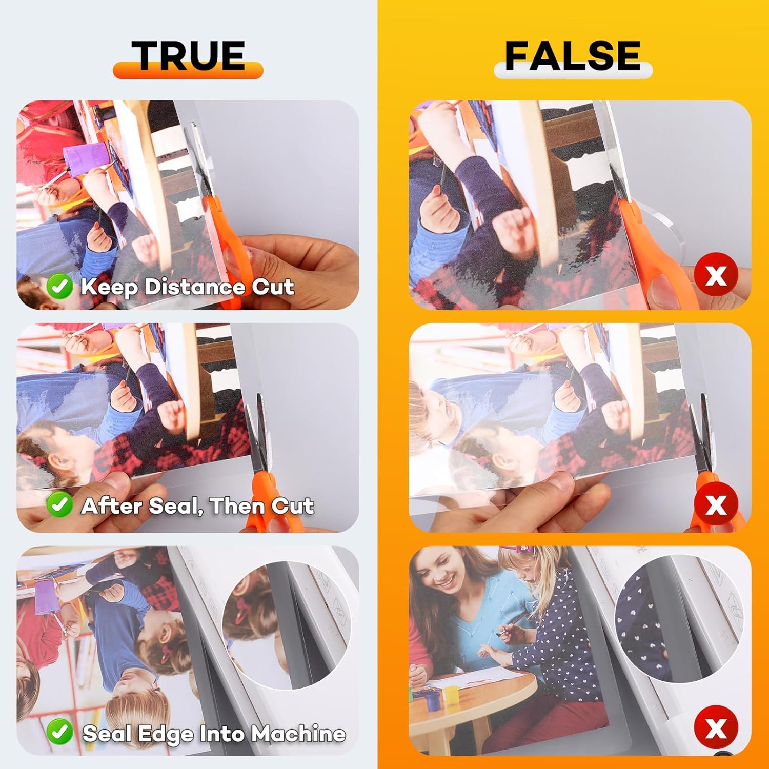 - Excellent Clarity:The laminating sheets only use high-quality adhesive for best transparency to ensure that the photos and documents are clearly visible let important information show through! Round corner design, safe to use