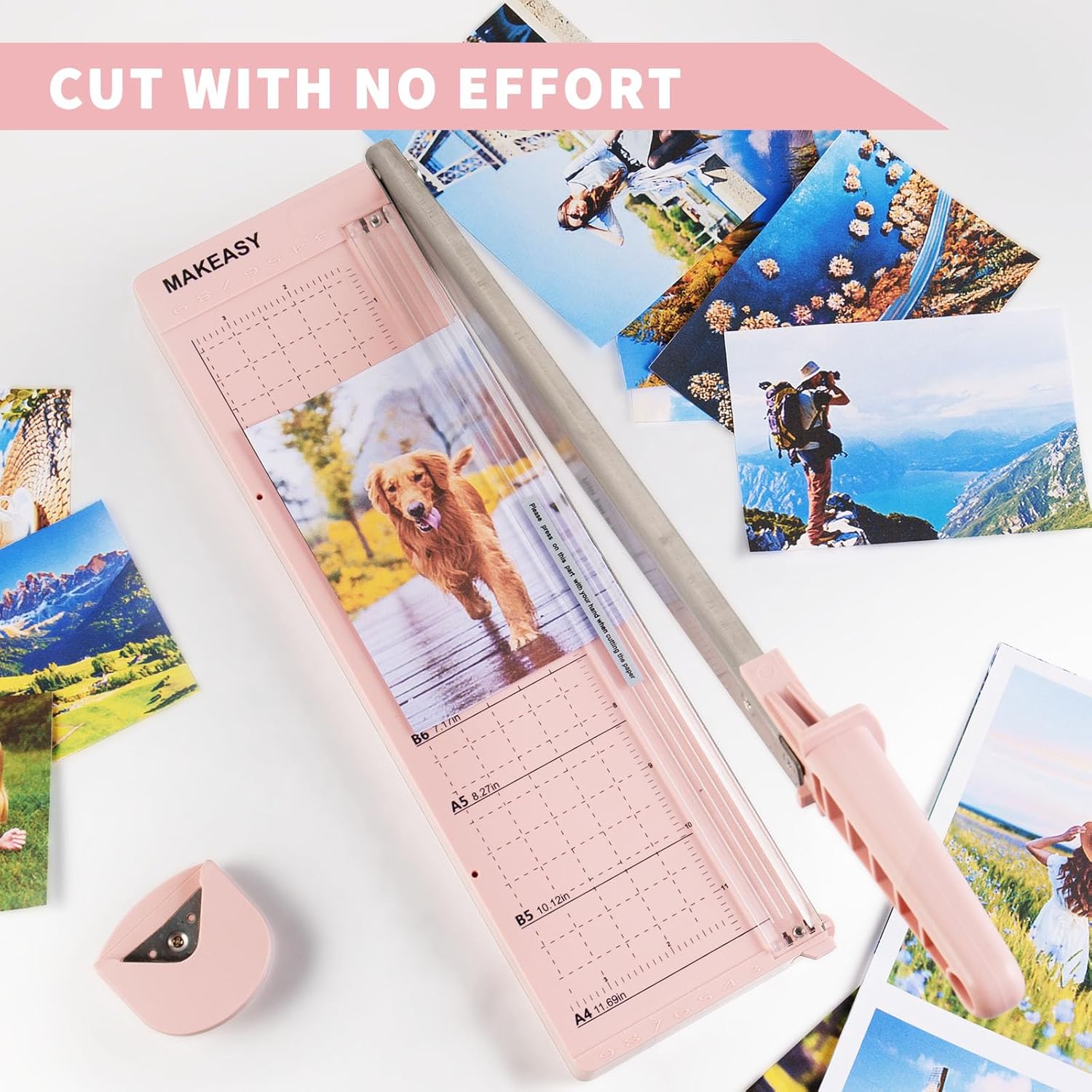 MAKEASY Paper Cutter 12 Inch, Guillotine Paper Cutter with 8 Sheet Capacity, Heavy Duty Paper Cutter for Cardstock, Paper Trimmer for Crafting, Classroom and Office, Pink
