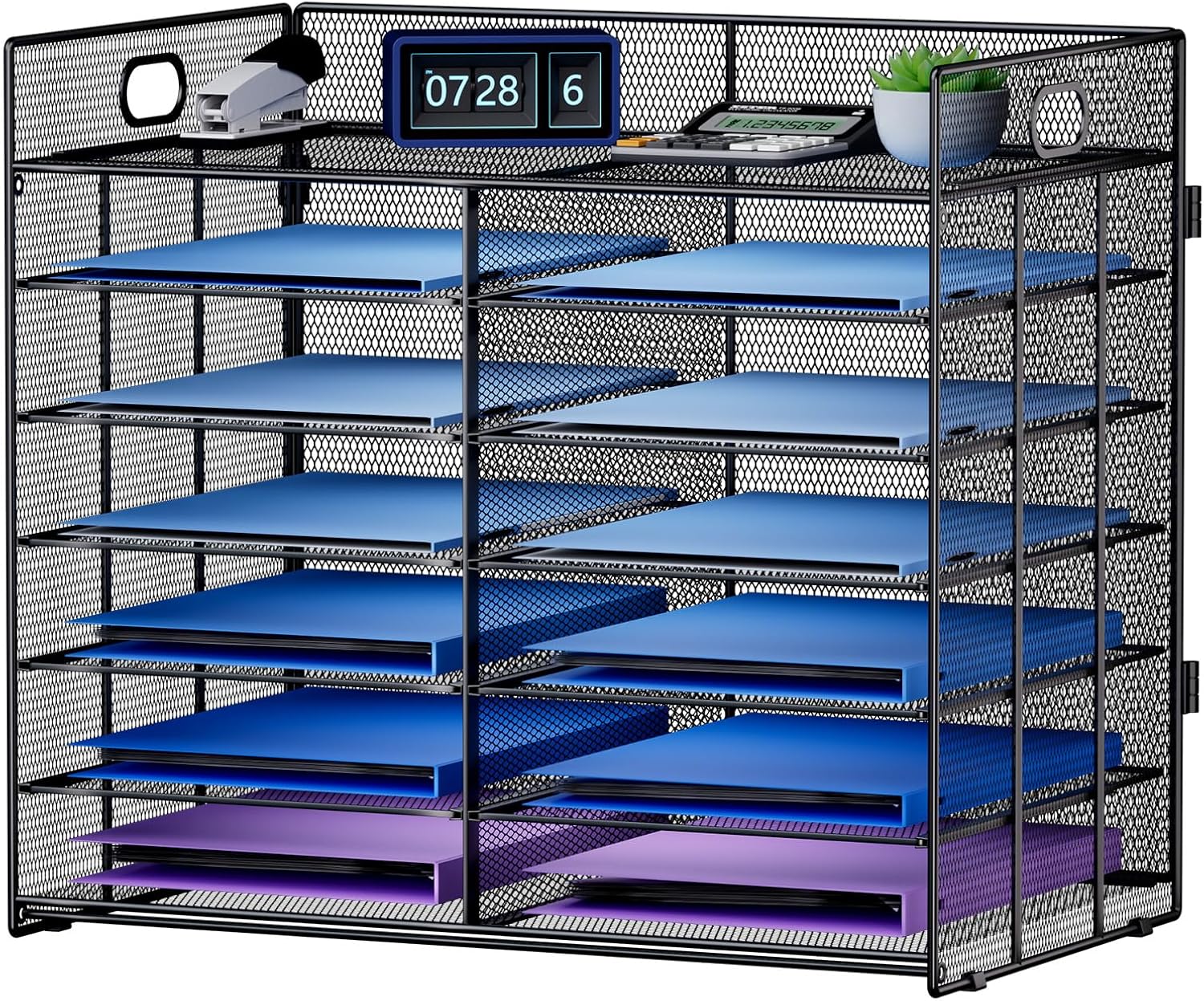 - 【Extra Large Capacity】Amazing storage capacity and space-saving design. With a total of 13 compartments, it helps you quickly and easily sort, store and organizer literature, magazines, comic books, files, student work, binders, catalogs, diaries, documents and files on your desk or counter, giving you back valuable workspace.