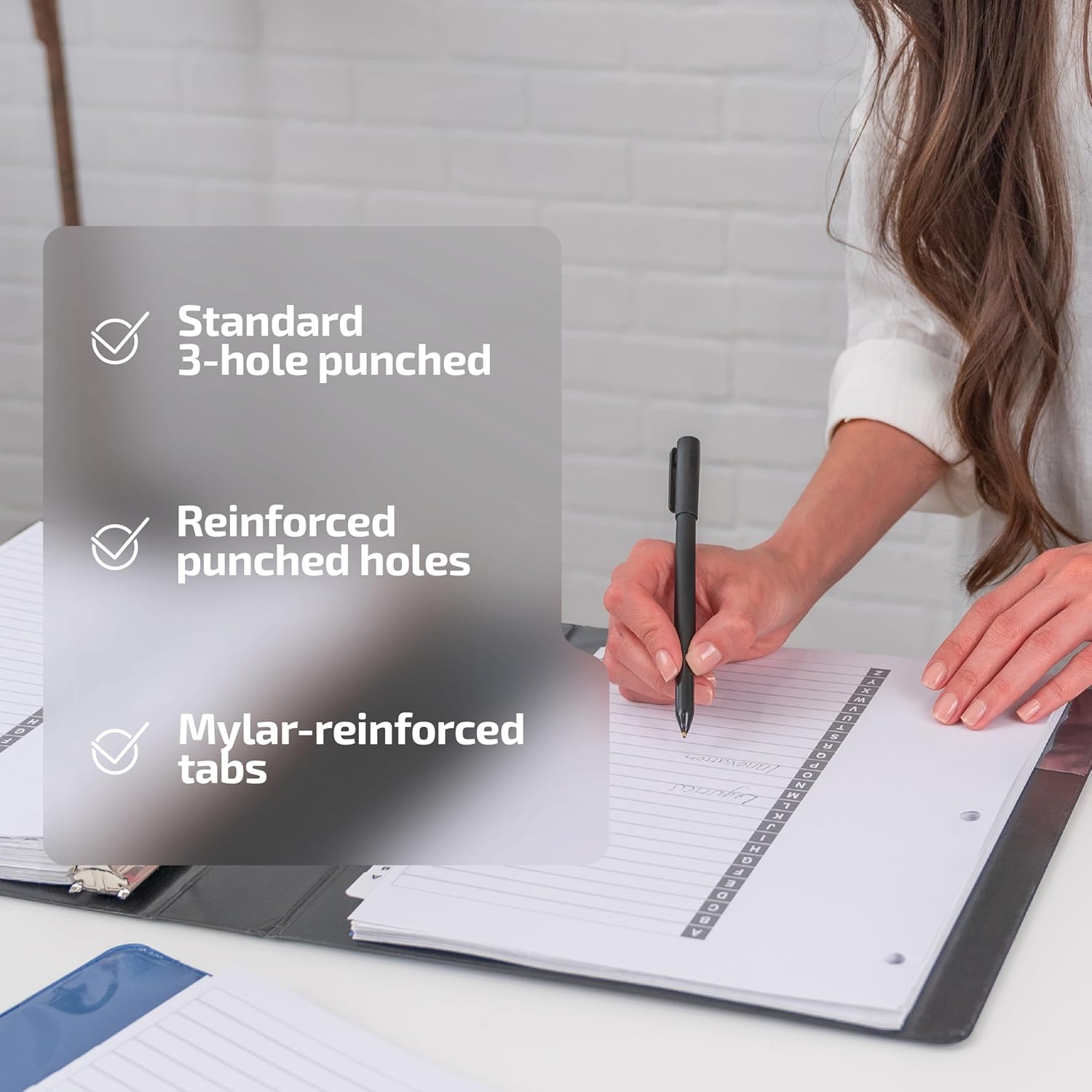 - REINFORCED BINDER TABS: Our durable binder tabs are Mylar reinforced to withstand frequent handling and maintain legibility over time. They include a customizable table of contents sheet.