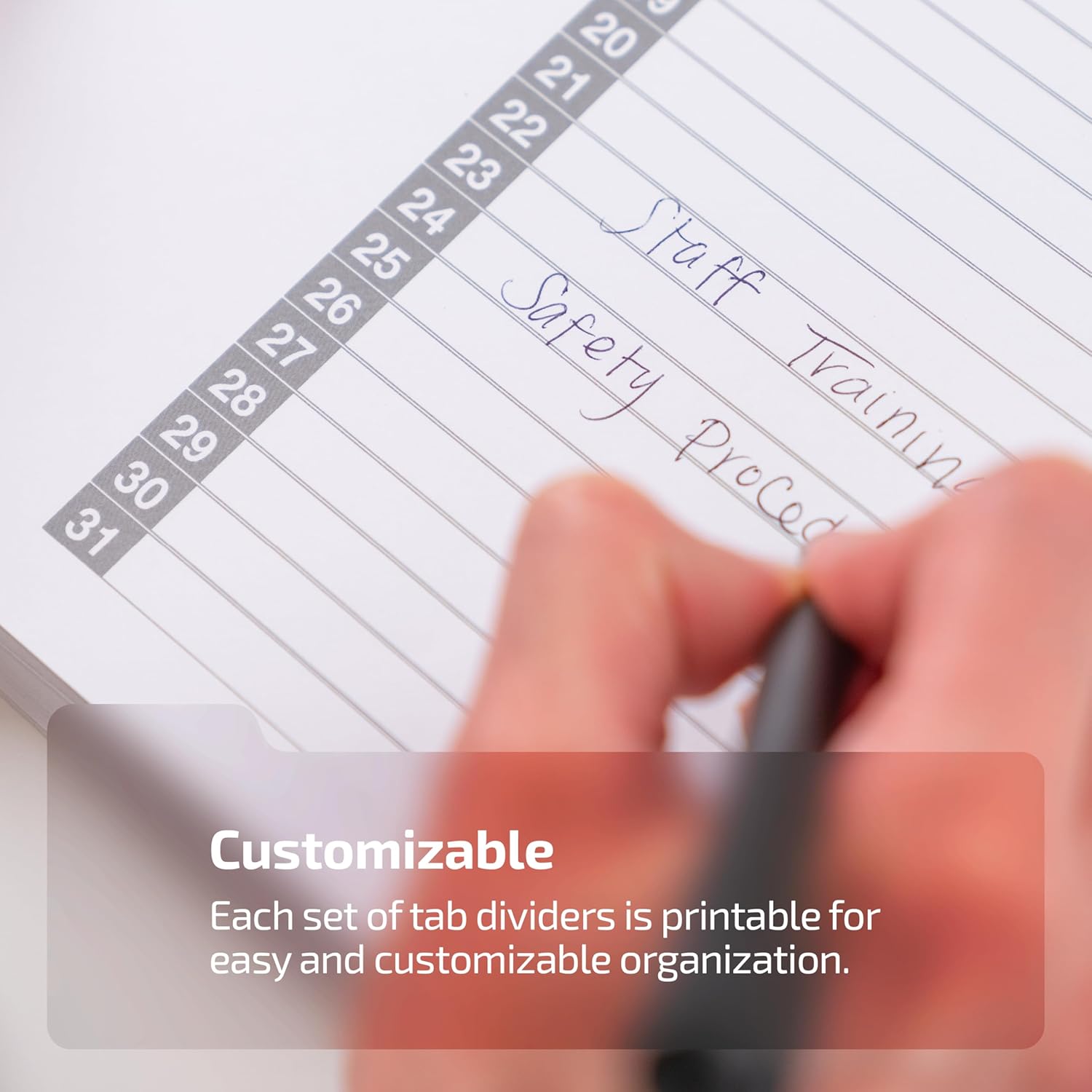 - REINFORCED BINDER TABS: Our durable binder tabs are Mylar reinforced to withstand frequent handling and maintain legibility over time. They include a customizable table of contents sheet.