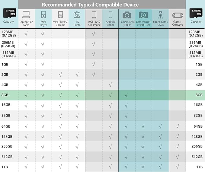 - High Speed: Micro SD 8GB 16GB and above offer U1 Class 10 or U3 high speed, support 1080P(U1)-4K(U3) recording, CCTV system and Games