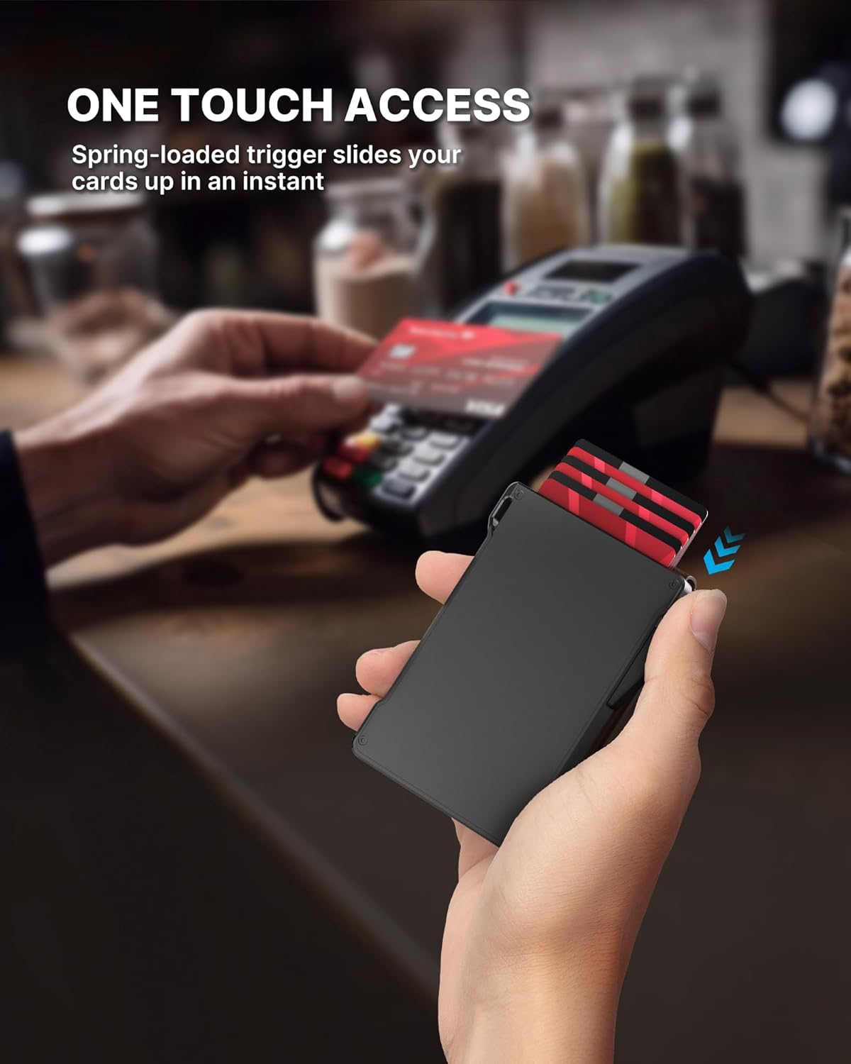 - 【Cutting-Edge Smart Features】Enjoy quick and effortless card access with our pop-up holder. A simple push-button mechanism reveals your go-to cards swiftly at your fingertips.