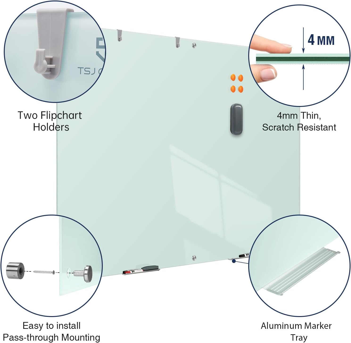 TSJ OFFICE Glass Dry-Erase Board - 72 x 48 Inches (6' X 4') Wall Mounted Glass Magnetic Whiteboard, Extra Large Frameless White Board for Office, Home & School