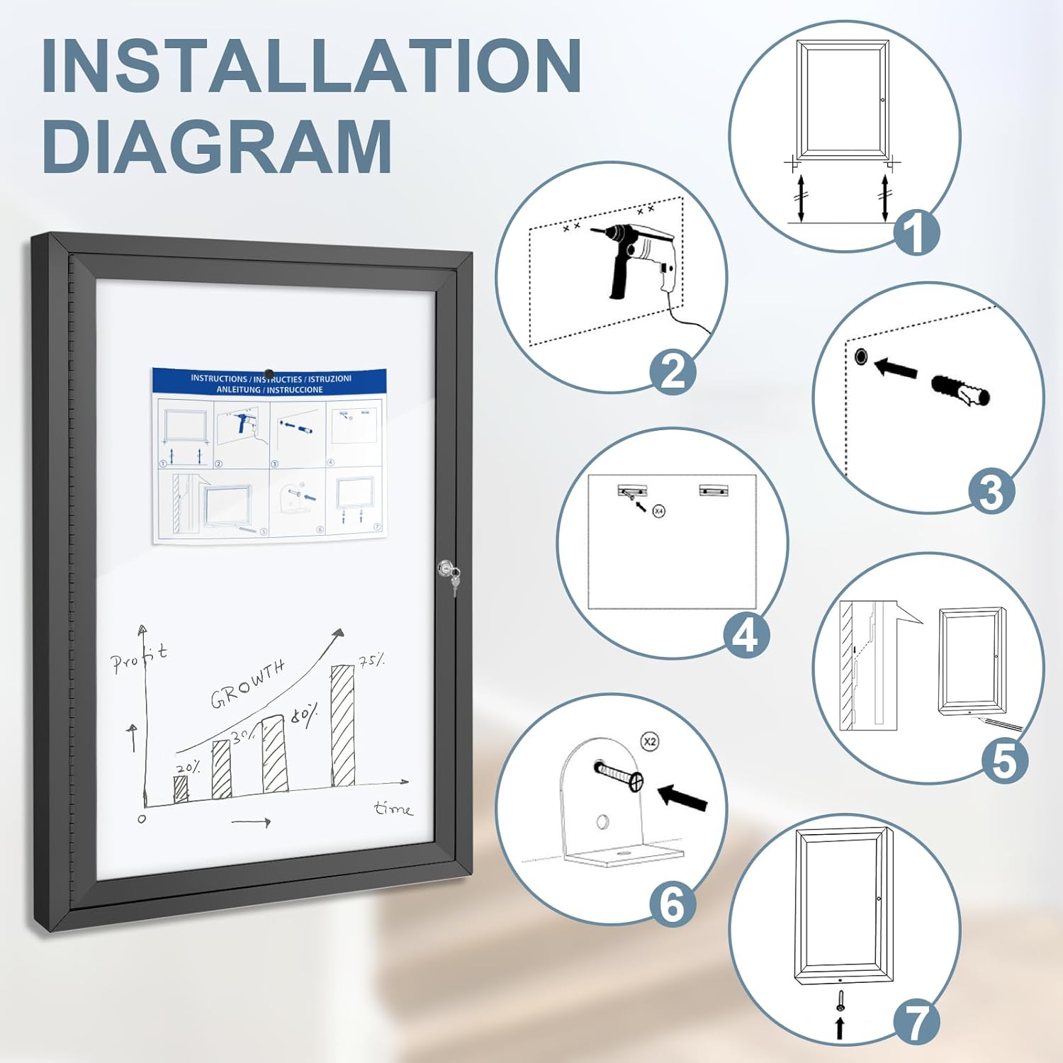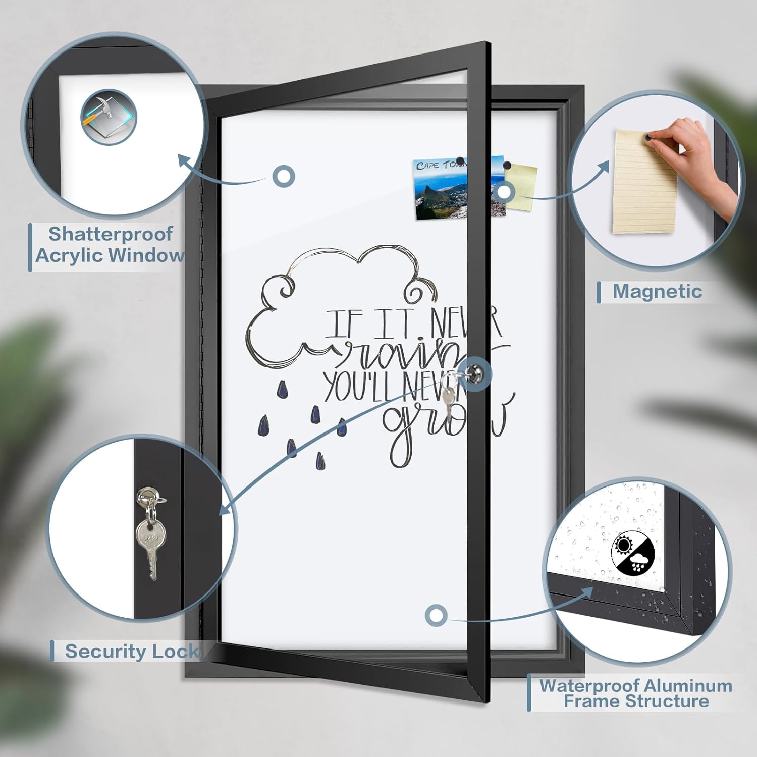 - DURABLE AND STURDY MATERIAL: The lockable notice board is made of coating magnetic lacquered steel, waterproof aluminum structure, shatterproof acrylic door, and aluminum composite back panels