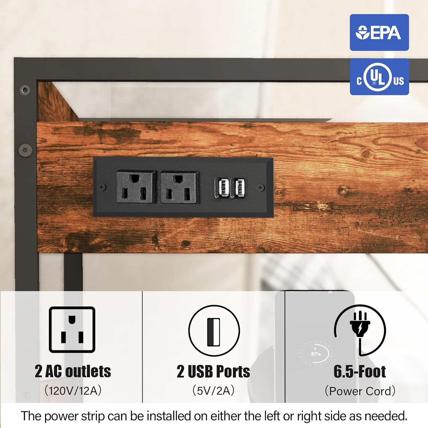 - Quick Assembly: The power strip with USB can be freely installed on either the left or right side as needed. The package includes an instruction manual, and with the tools provided, assembly can be completed in just 10 minut