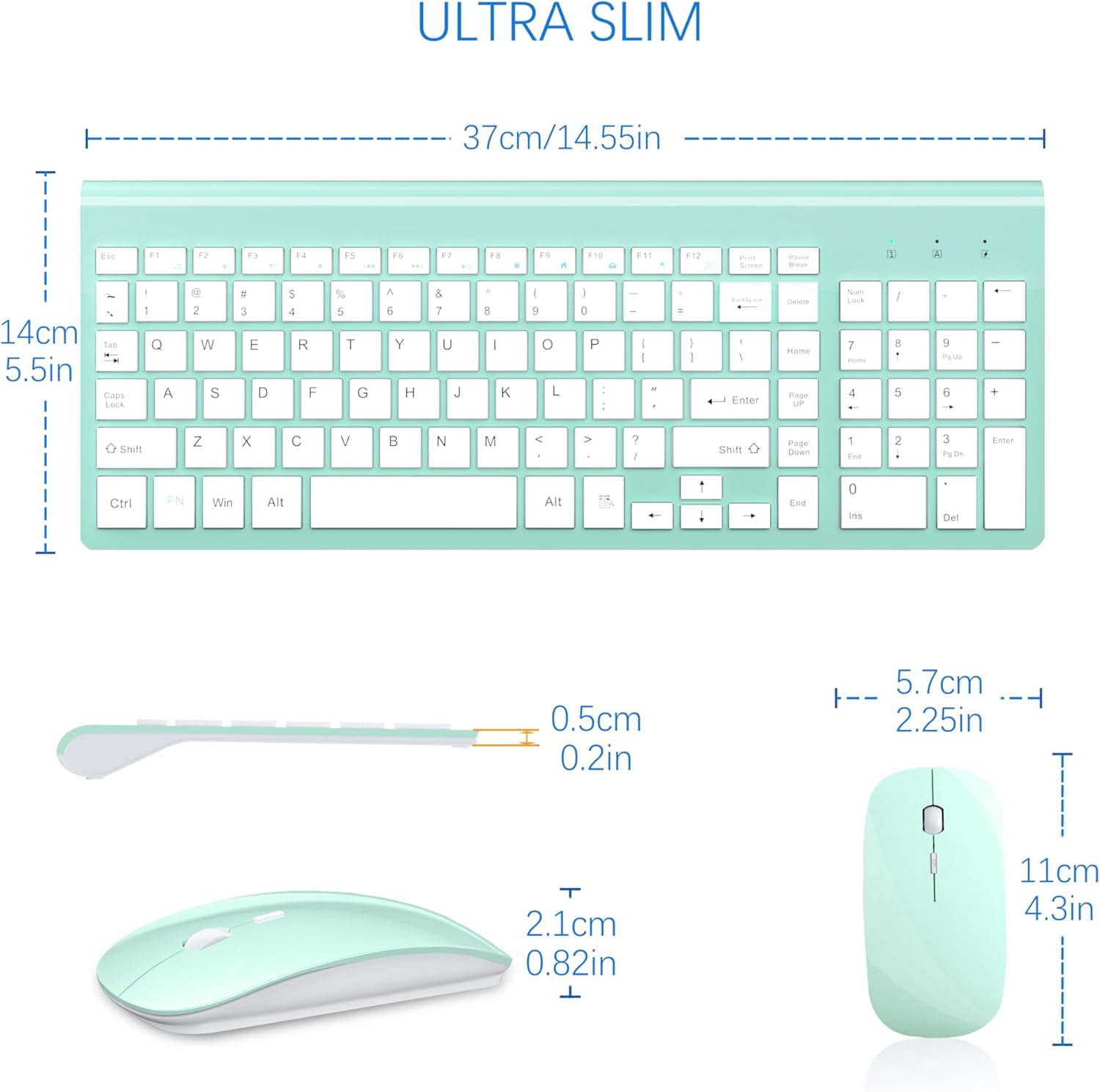 Wireless Keyboard and Mouse Ultra Slim Combo, TopMate 2.4G Silent Compact USB 2400DPI Mouse and Scissor Switch Keyboard Set with Cover, 2 AA and 2 AAA Batteries, for PC/Laptop/Windows/Mac - Mint Green