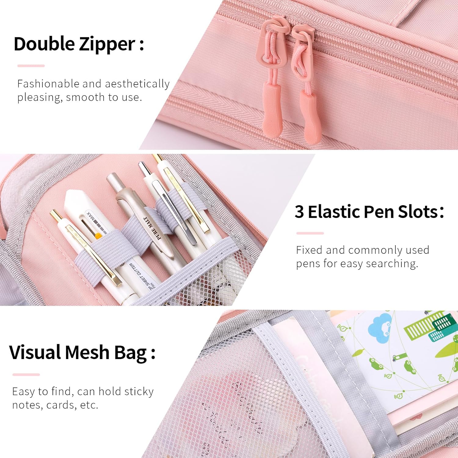 CICIMELON Large Pencil Case Big Storage Pen Pouch Bag with Compartment for School Supplies Office College Teen Boys Girls Adults, Upgraded Pink