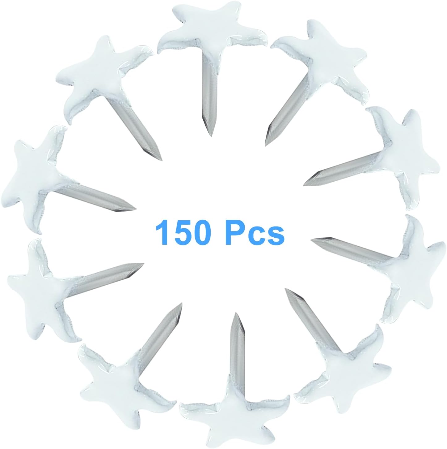 Piutouyar 150 Pcs Star Push Pins, White Upholstery Tacks Star Shaped Decorative Thumb Tacks Metal Upholstery Pins for Upholstered Furniture Cork Board DIY Projects or Home Decor 11 x 13mm