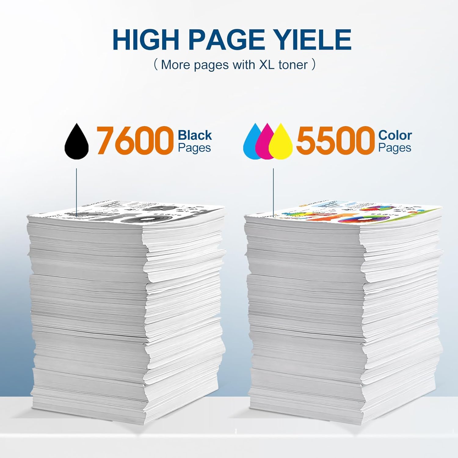 - High Page Yield : Up to 7600 pages for canon 069H black toner cartridge, 5500 pages for canon 069h color toner (at 5% coverage)