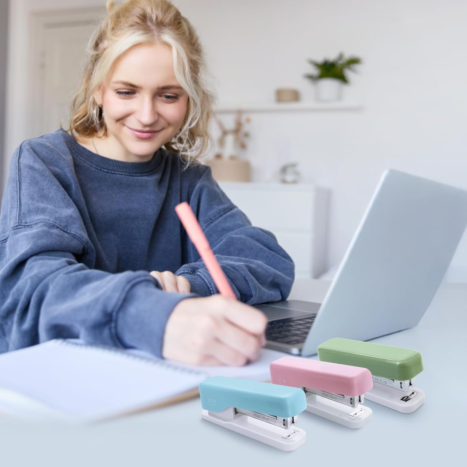 - 🩷【Cute Design】Stapler has lovely color matching and fashionable appearance, which is very suitable for home school and office. Candy color matching brings good mood to your work and life.