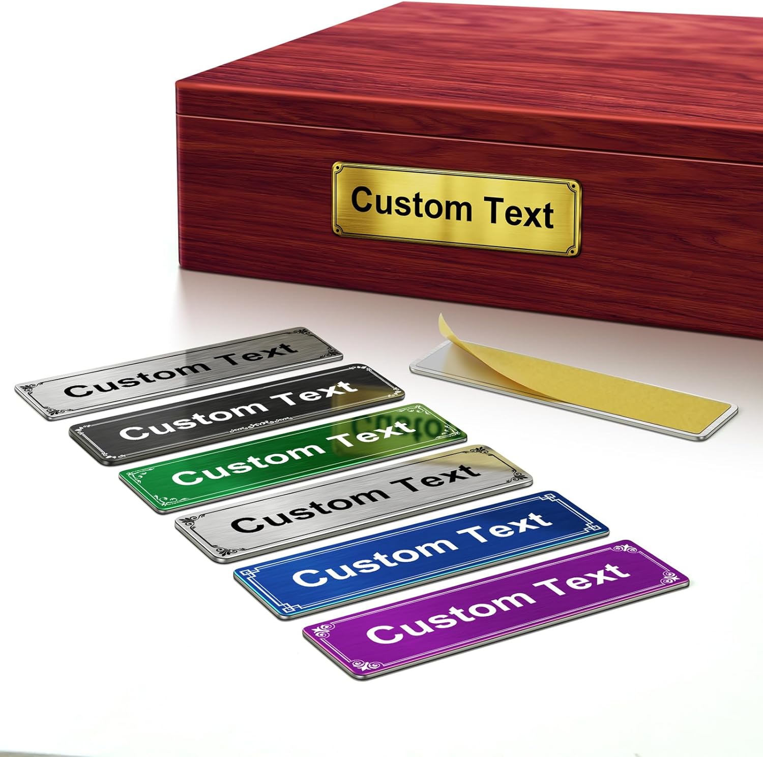 Stainless Steel Personalized Name Plate with Adhesive - Custom Plaque, Name Tag, Badge, Lable, Sign - Decorative Engraved Name Plates for Trophy, Award, Memorial