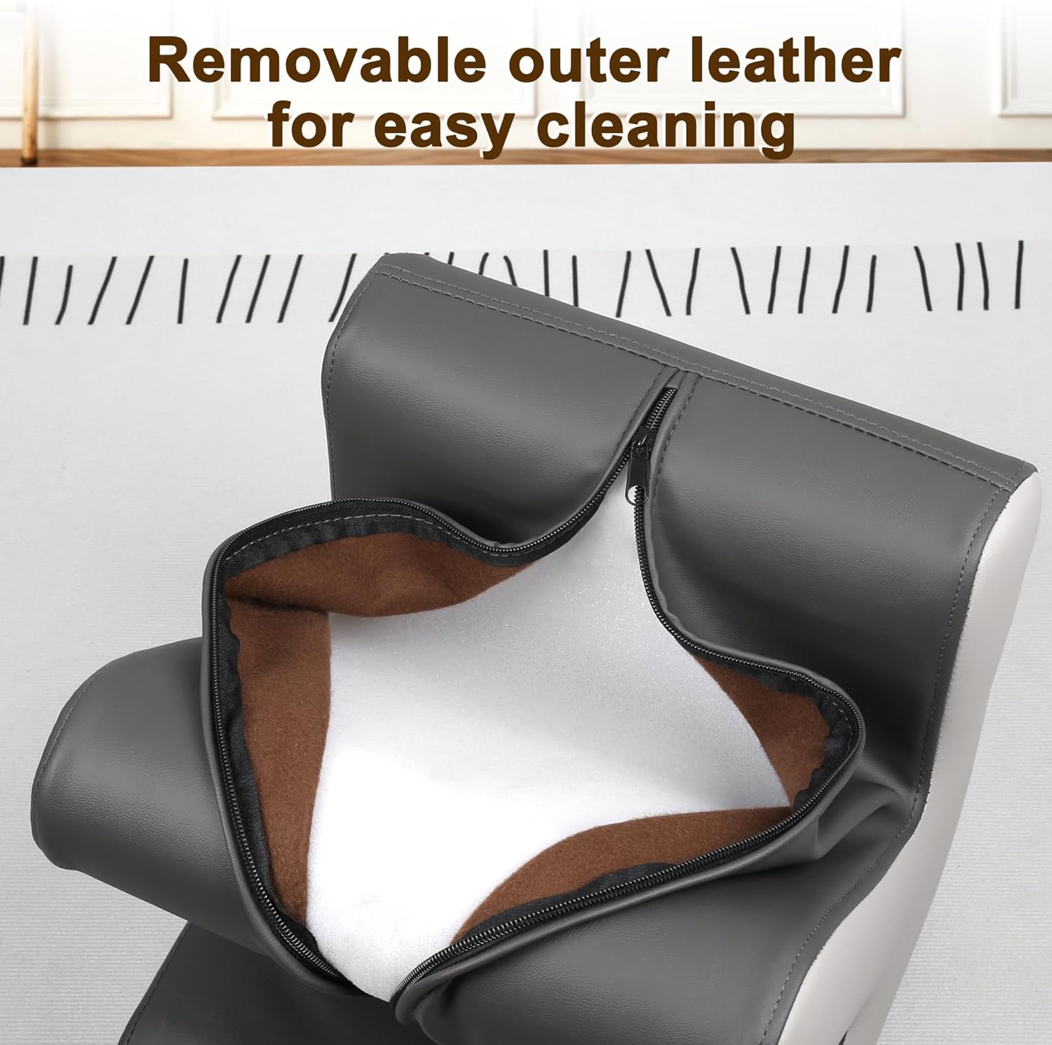 H&B Luxuries Ottoman, Foot Stool with Creative Shape, Napa Leather Ottomans, Removable Outer Foot Rest, No Assembly Required, Ottoman for Living Room, Bedroom, Entrance, Gray White