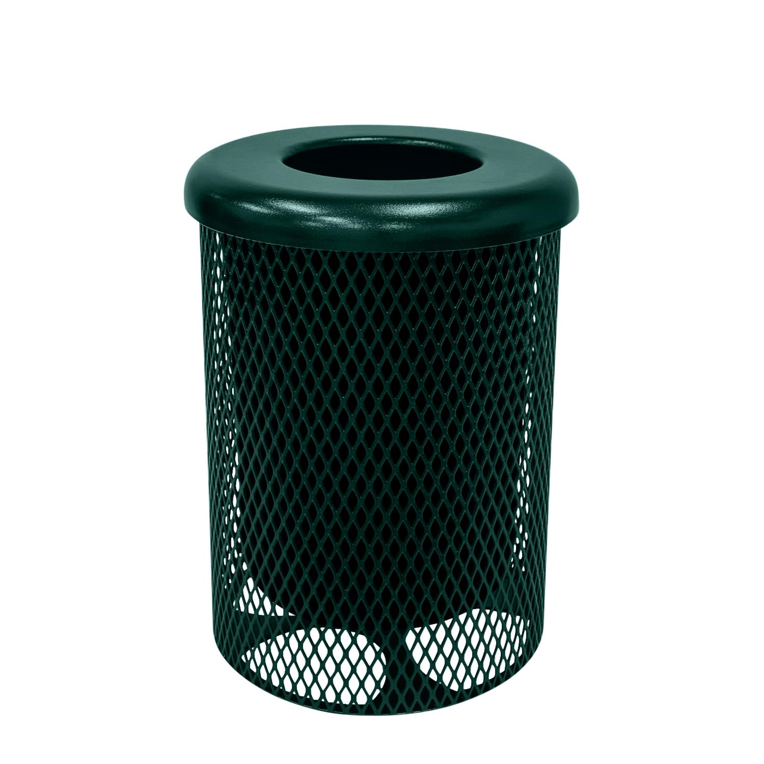 RFT-DGRN Heavy Duty 32 Gallon Round Trash Receptacle, Liner Included, Dark Green with Flat Top Lid, Made in America